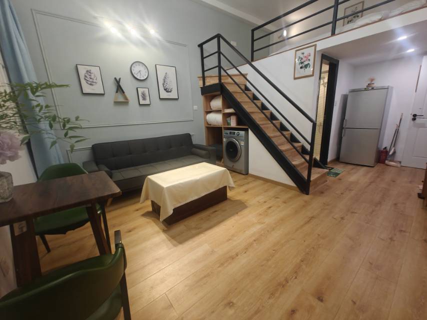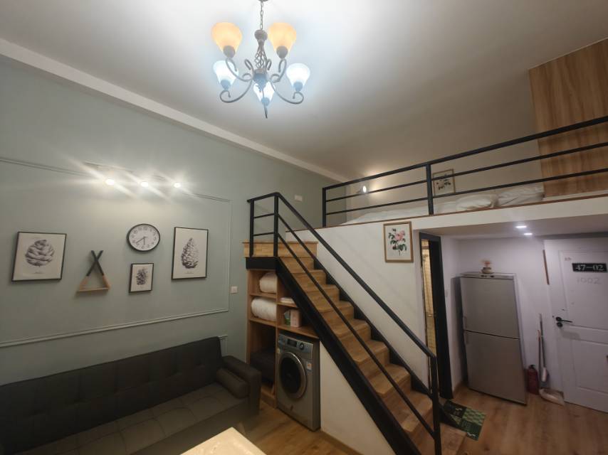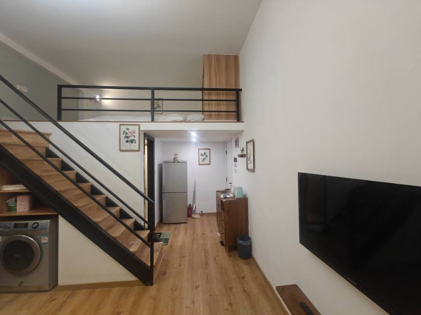 一室一厅,Loft结构。也可以做两房。六七十个平方全配,有地暖。带烘干洗衣机。拎包入住。随时看房,随时入住。原来是6500租的,现在房子都便宜了,所以。4900就租。