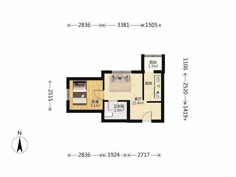 房间1卧室/1洗手间