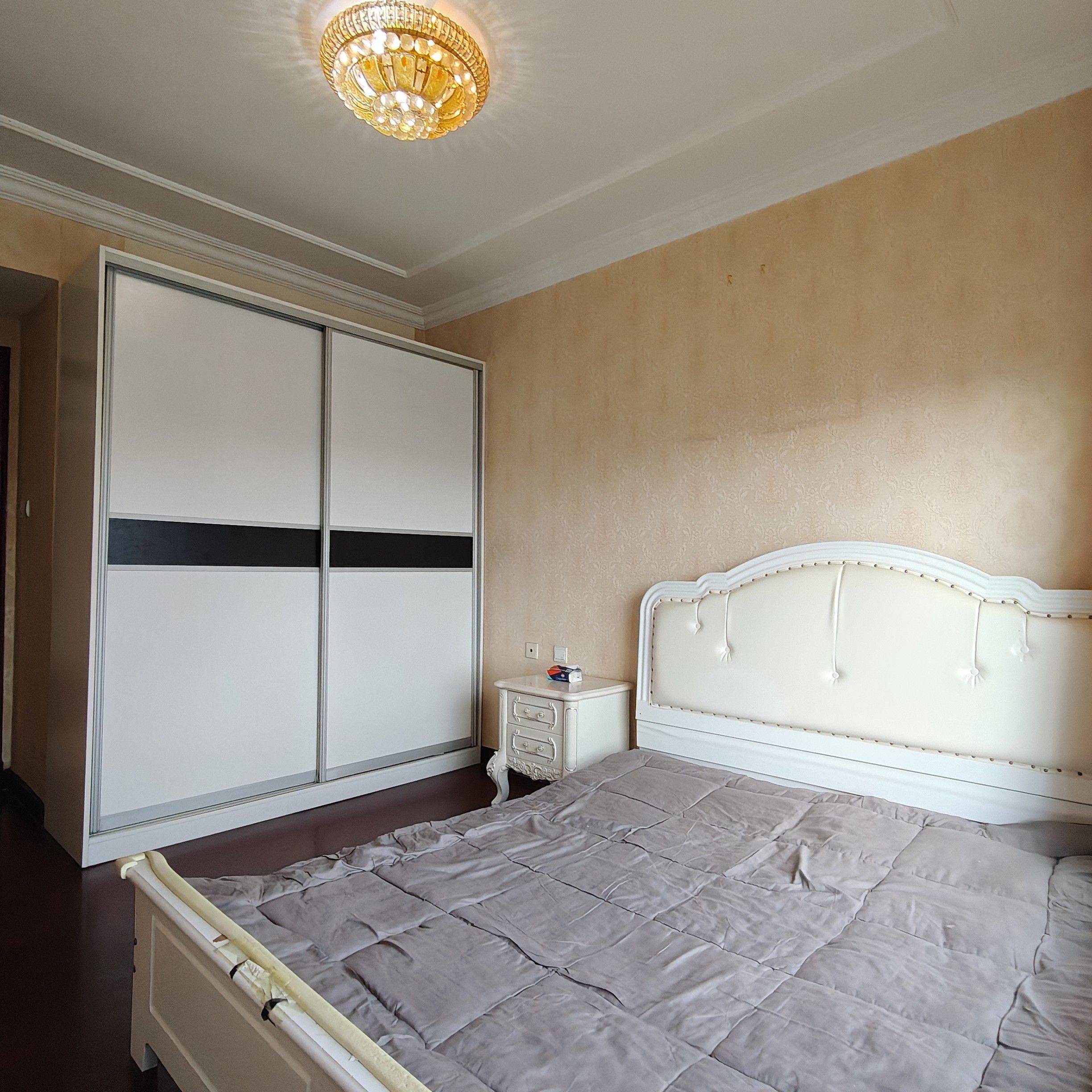 瑶海区恒大城。两室两厅房屋整租。包物业,包宽带。无中介费。房东直租非中介没有任何费用。有宽带,之前一直是自己住。 楼层位置好,晾晒条件非常好。全屋墙面墙布墙纸。茶几,电视柜,餐桌都是大理石的。所有房间都有空调。卫生间干湿分离有浴霸。通燃气,全屋燃气热水器热水无需等待。入户是小米指纹锁。不用担心丢钥匙。房间朝南。视野好,全天无遮挡。采光量足。 晾衣架,鞋柜,衣柜,落地全身镜全都有。每个卧室都有床,拎包入住。还包物业费,包宽带,楼下就是小区入口。出入方便。恒大城2期进门右手这一栋就是。