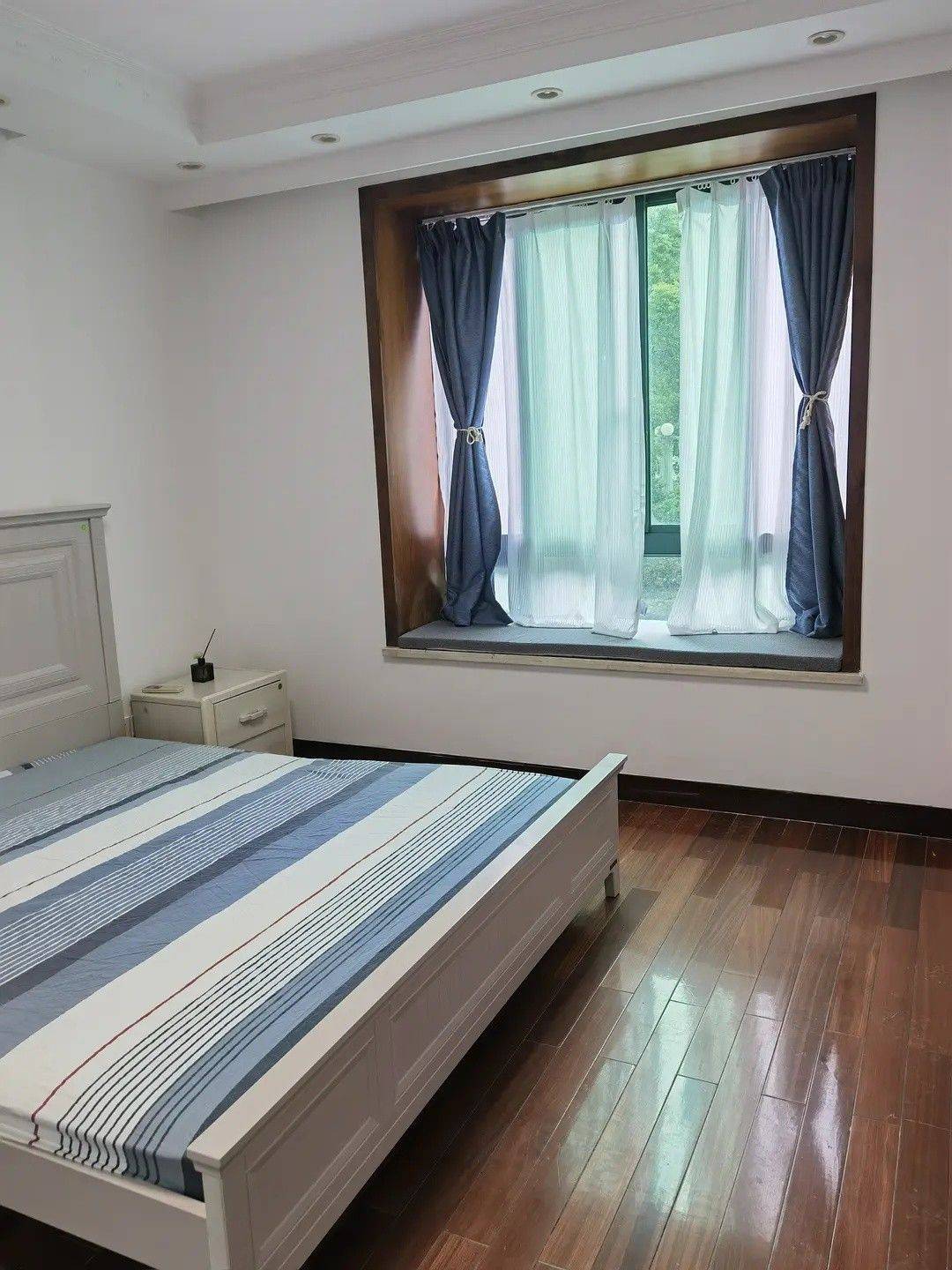 静安内环汉中路地铁三线换乘带飘窗带独立卫生间大主卧出租(面积约25平米) 【房屋类型】:合租 【可入住时间】:2月27日 【房屋位置】:静安区长安路768弄 【户型】:四房两厅两卫 【是否合租】:是 【交通】:约5分钟步行到1、12、13号线汉中路站,3、4号线上海火车站站;小区附近有非常多条公交很方便 【周边环境】:商场,学校,医院,菜场,便利店,公交站,生活气息浓厚。小区绿化率高,闹中取静。全新出租,简约风格,高档小区,环境优美,苏州河边空气好。 【要求】: 寻找爱干净,工作稳定,作息正常,讲卫生,友好不作,不吵闹,能和大家一起爱护公共区域的卫生。 价格包含物业费,宽度费用以及公区阿姨卫生费,没有任何中介费,也没有任何附加费用。民水民电按人平均分摊。