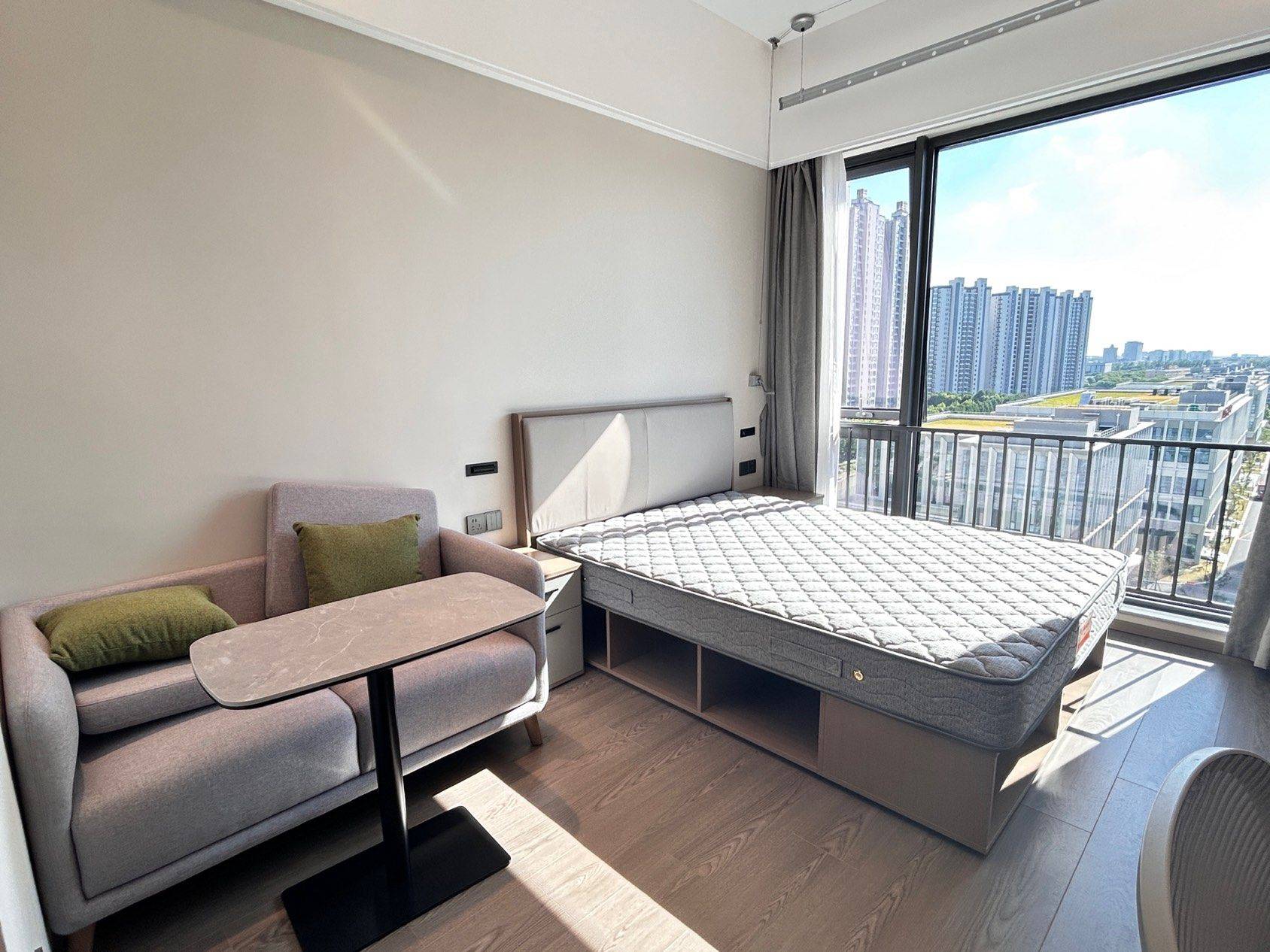 房源转租中: 标准一室户型 在15号线永德路地铁站,距离地铁口200米 周边:万乐城商圈,商业很成熟,生活便利 目前已经,随时可入住! 可以12个月的合同,12个月还送1个月租期 房子很新,装修风格很有亚朵酒店氛围 一体式橱柜,储物空间设计的又多又隐蔽 床垫是我最喜欢的,国际一线品牌,让经常失眠的我都很好梦,相比其他出租房这个细节很赞 适合在微软、微创,中国商飞,晟碟半导体,英特尔等紫竹开发区上班人员、零号湾,中广核、上海航发,交大华师大、吴泾宁德时代,健康云城等吴泾上班工作的朋友 还有免费的健身房,直接省去了一个月500的健身卡费用。 通勤时间在15分钟内👍 而且房子的配套齐全舒适 这里也有其他朋友在转租可以短租2个月的,如果你考虑短租也可以联系我!