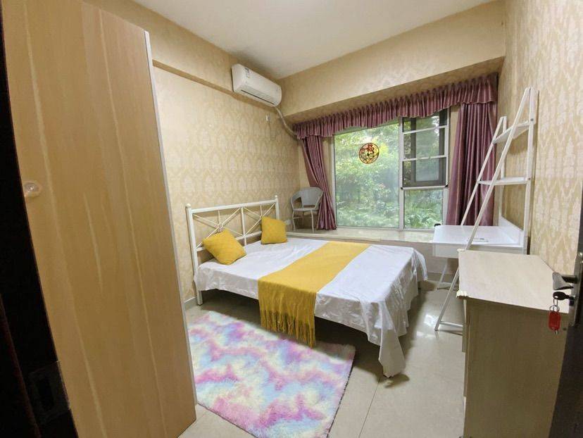 房子概况:阳光充足很温馨,配的密码锁,隔音也很棒,晚上不会吵,房间好打扫很干净,环境也很好 家庭设备:洗衣机,热水器,空调,桌子,椅子,衣柜,床,厨房,化妆桌 地理位置:离地铁很近 几分钟的路程 上班通勤方便 周围设施:小区门口有快递驿站 拿快递超方便,楼下有小吃店,药店,超市都有哈 水电费:民用水电,和室友平摊,一个月几十块 租期不限
