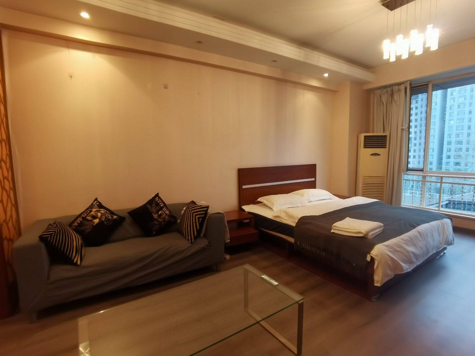 Shuangjing to guomao line 10/7/14 pingod service community studio south facing ,6th floor.10minutes walk to guomao .8minutes walk to jiulong shan or Shuangjing subway line 10/7/14 .there are gym ,32th art street,restaurants,supermarket,bars and coffee store. 双井国贸大望路苹果社区北区服务公寓,大开间南向,6层。大概10-15分钟到国贸,双井,九龙山或者大望路。楼下有饭店,健身房,7-11,咖啡店