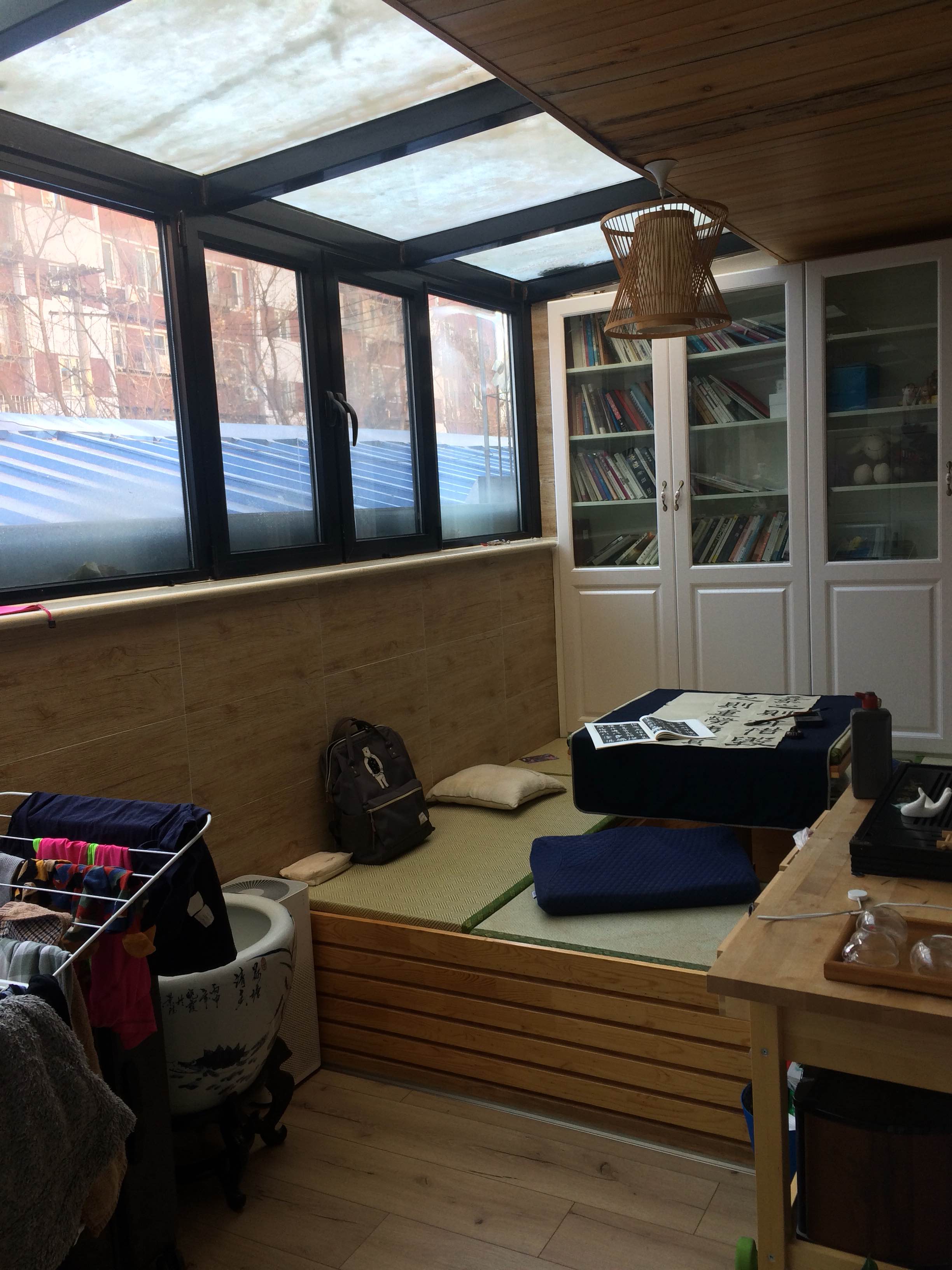 The apartment: This is a beautiful, modern apartment in Liulitun. We have a living room as well as a beautiful "winter garden" with a glass roof. All the furniture and appliances are new and in great condition. Very warm in winter with 24/7 hot water. The apartment is very tidy, we have an ayi who visits twice a month as well as a Xiaomi "cleaning robot" to keep the floor tidy.
