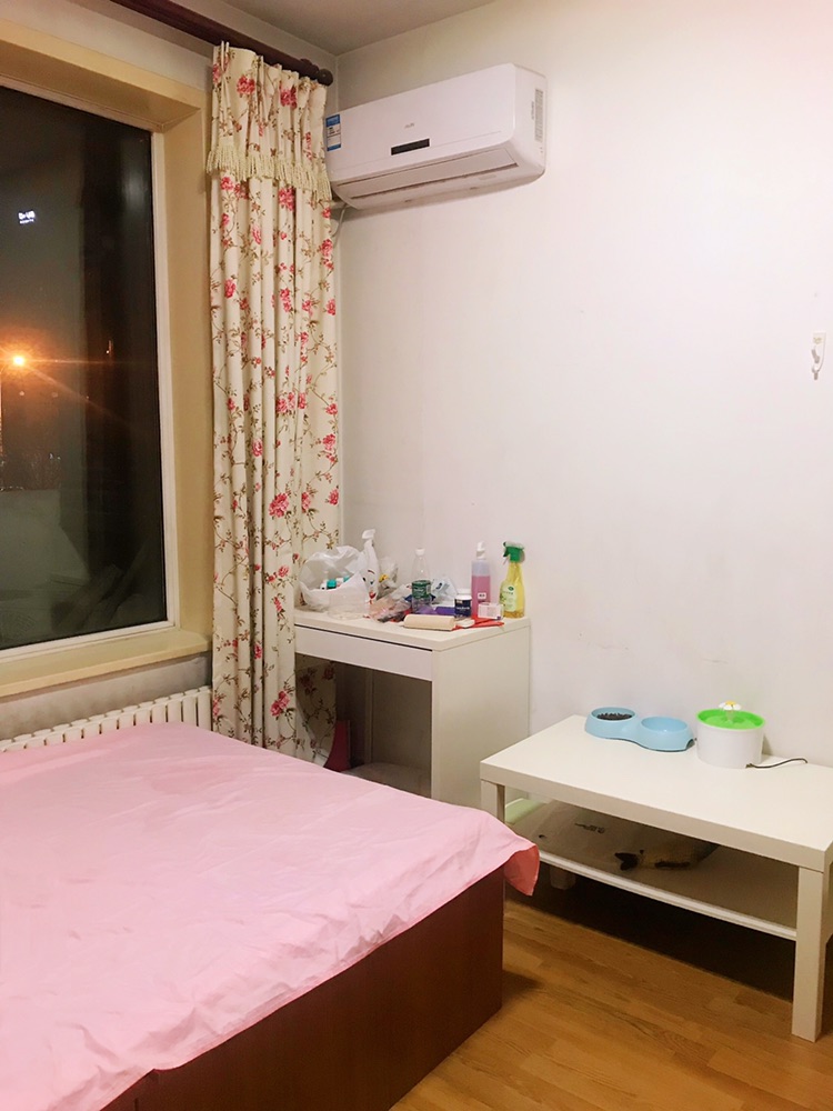 The apt is locate near Wangjing area, close to line 14. very convenient living area, facing the shopping center, carrefour, cinema, etc. Spacious 3 bedrooms' apt + 2 bathrooms. equipped with high quality furnitures. very comfortable to live here. share the apt with a female profession and cute boy. for the future flatmate hope you are pet lover, cause we have 2 lovely cats in home. 3000 RMB/M, heating fees is around 1000 RMB for the season. single female profession will be more preferred. the lease is until June 2019, possible to extend the contract after that. 1、房子地点:上京新航线小区,房子就在2楼不用等电梯,出入非常方便。 2、附近交通:下楼就是小区北二门,出了北二门就是利泽西园公交站,可以直达美团。下过个马路就是美团东湖渠地铁摆渡车的停车点。走路2分钟就是东湖渠地铁站A/D出口。附近就是望京华彩中心,有华谊兄弟电影院,家乐福,物美超市。吃住玩看电影都很方便。 3、出租的房子概况:三卧室两厕。主卧有独立厕所。另外一个公共使用。 房间公卫有窗户,通风透气,无异味,热水器是A.O史密斯,进口品牌,安全有保障。 出租的房间13平米左右,但是只要一个人入住。情侣等不行。 有一个大窗户,但房子在内侧,因楼层较低,阳光无法直射。 有独立衣柜书桌书架。 4、价格以及租期: a.房租:3300/月,押一付三(我是跟房东直签的房子,可以给看合同)诚意租可小刀 b.其他费用:物业费房主支付,暖气费1000.每月平摊水电网费。 c.租期:2019年8月4日开始到2020年6月30号 5、租客要求:仅限女生,最好是在望京附近上班。 6、其他室友概况:主卧即将空出,客厅隔断是一个女设计师有两个小英短。都是北漂小青年。特别爱干净,上下班基本互不影响。周末可以 7、注意事项:家里有两个乖巧的小猫~不会打扰到你们生活。希望爱猫人士前来。没有爱心的,害怕的请慎重。如果你爱动物爱干净欢迎叨扰。 8、有意可私信,周末或者晚上7点后都可以看房。或者随时约时间。 附照片,建议可以具体上门查看