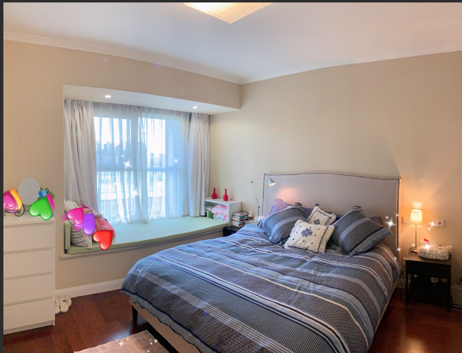 Its a decent 2 bedrooms' apt with a cloakroom, very beautiful decoration. surrounded by shopping center, bus stops, line 6, etc. convenient location for both working and living. long and short term are both acceptable. Pets friendly. for more info plz pm me. 我的房子是整套公寓,拥有两室一厅两卫和一个衣帽间。照片拍不出实物的美,房子靠近公共交通、长楹天街、朝阳大悦城、中国传媒大学。房间朝南阳光充沛,因为地段、氛围、装修设施、灯光设计,您一定会爱上这里。 我的房源适合一家人,情侣,猎奇的旅行冒险家、商务旅行者、毛茸茸的伙伴(宠物)。 这里你可以享受酒店的便利、家的温馨、咖啡馆的文艺。