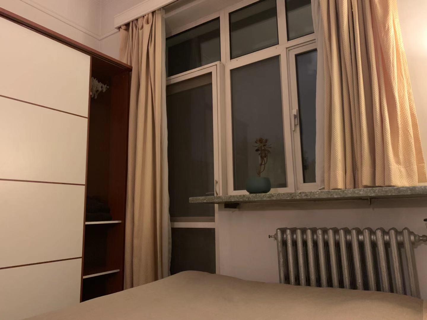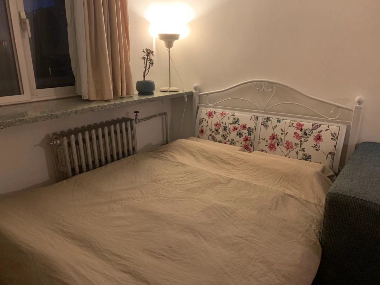Spacious room with VERY HIGH ceiling at the chic Sanlitun Diplomatic Compound · Room has IKEA furniture, 55-inch LG TV and a big balcony, ideal for Sunday reading and afternoon tea. · Fifth floor with elevator. The apartment is south-facing, which guarantees a warm (sunny) winter. It features a spacious kitchen with 4-burner stove and a big oven, a bathroom with a bathtub, big fridge, Siemens washing machine and Optic-fiber high-speed WiFi · Sanlitun Diplomatic Compound is one of the most wanted diplomatic compounds. Average wait time on the waiting list is one year. · Situated at the center of Sanlitun with 2 mins walk to Taikooli North and The Opposite House. Yet just a small turn into the lane it is the quiet and highly secured Diplomatic Compound. 3 mins to East 3rd Ring, 8 mins to Line 10 Tuanjiehu Station or Agriculture Exhibition Center station. By bike: 10 mins to Lufthansa, Lucky Street, Dongzhimen and Workers Stadium. Location, location, location! · Rent: 5500 yuan/month, one month deposit. Pay seasonally. Negotiable depending on payment method and length of lease · Most suitable for those who work near Sanlitun, Lufthansa, Gongti and Dongzhimen. Good for professional people who values Quality of Life. Women and professional people preferred. However, if your focus is on Sanlitun night life and bar hopping, maybe this apartment is not for you. · Room is available to view now, ok to move in from Sept 16.