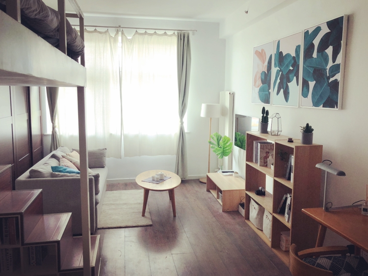 -这是两位拥有审美强迫症的设计师精心布置的小屋,MUJI原木风质感家具、色彩碰撞的装饰画作、可爱的绿植作伴...满足你的拍照欲。
