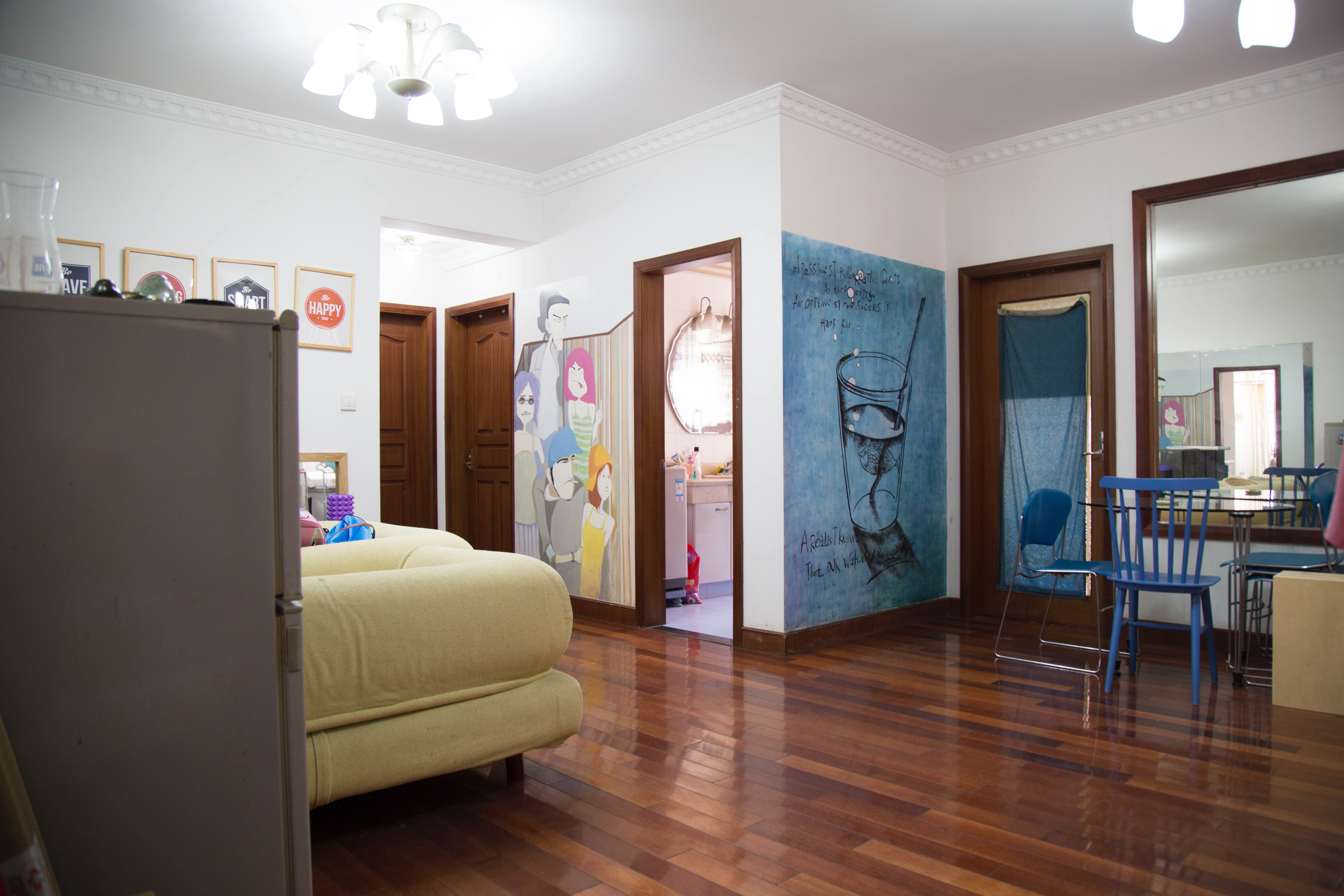 A spacious, bright room with a nice view in a large, shared apartment. 可以能全天晒到太阳的温馨卧室:), The room will be available on March 1st 可在3月1日后随时入住啦! 房屋具体情况:三室一厅一卫一厨(整套公寓大概110平),次卧直租(20平左右),长租。卧室朝南,阳光照射充足,几本整天能晒到太阳,可在3月1日后随时入住,个人直租,无中介费。 我们的房子在武泰公寓,坐落于泰兴路555号,在地铁1号线,12号线,13号线的中间,距离汉中路地铁站800多米,南京西路地铁站900多米,也可以散步至自然博物馆站乘坐11号线,同时毗邻苏州河。住所附近生活方便,有联华超市,奥乐齐,清美,罗森等便利店,星巴克,瑞幸咖啡均在楼下,也有卖果蔬的小商贩。现在想寻找一位有稳定正当工作,干净整洁,无不良生活习惯的合租伙伴,女士优先。我们提供免费wifi,房租月付,押一付一。 关于本人:在同济大学工作,85后,和先生同住在此公寓主卧,另一次卧住一90后朋友(女生,已经一起合住6年),现马上搬出去的室友也同住3年,因公司福利,分得住房,我们相处友善,也不过分互相打扰。 The apartment: The flat has three bedrooms and is equipped with everything you need, refrigerator, cooking stove, microwave oven, kitchen utensils, free wifi. The location: On Taixing Rd (泰兴路) Walking distance to Line 2,Line 12,Line 13(west Nanjing Rd station) and Line 1(Hanzhong Rd station). In direct proximity to the apartment there are both local and imported goods supermarkets, restaurants and 24/7 convenience stores. Additionally there are hair salons, various fruit and vegetable shops, bike repair shops and imported liquor stores. There are also several gyms in the area. The rent: The rent is 3300 per month, one month rent and one month deposit. Looking for a CLEAN and FRIENDLY person to share this apt. LADY FIRST!