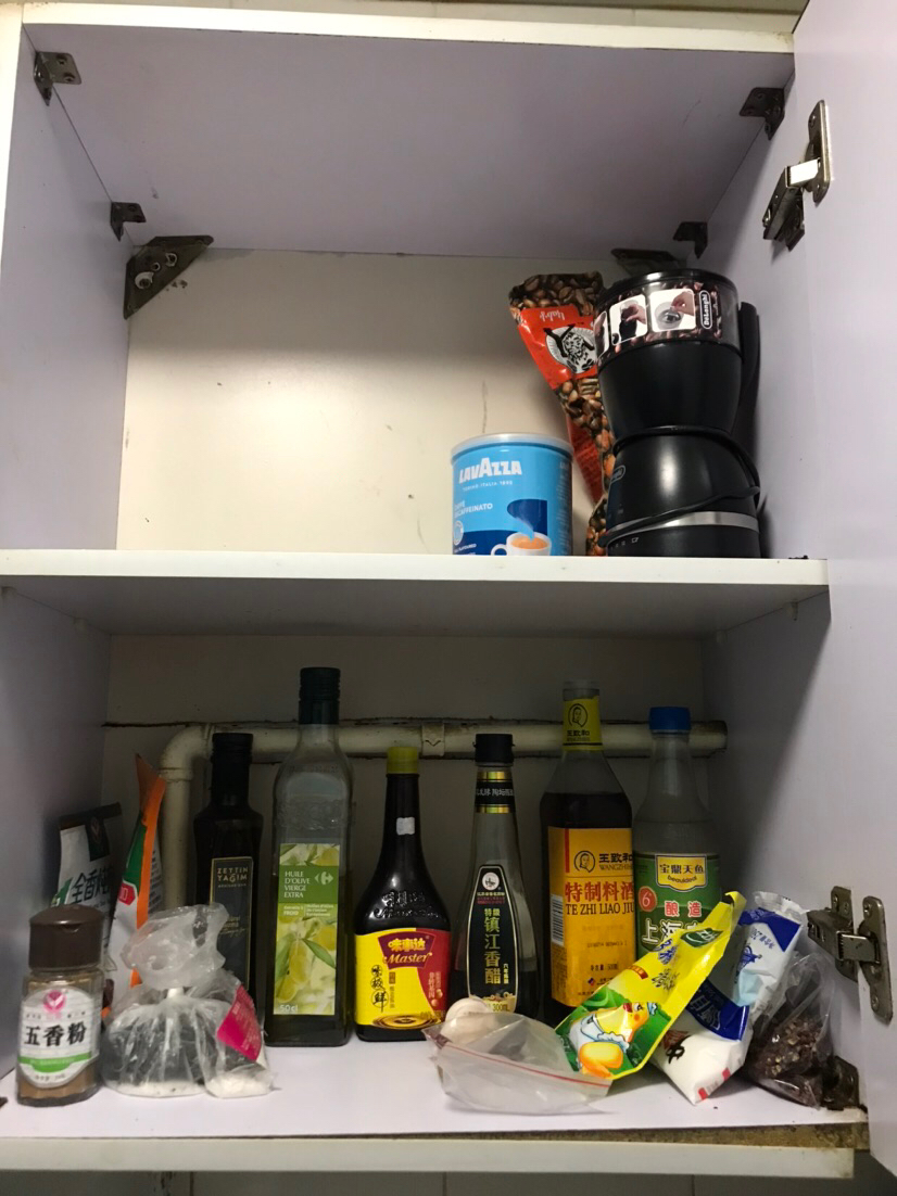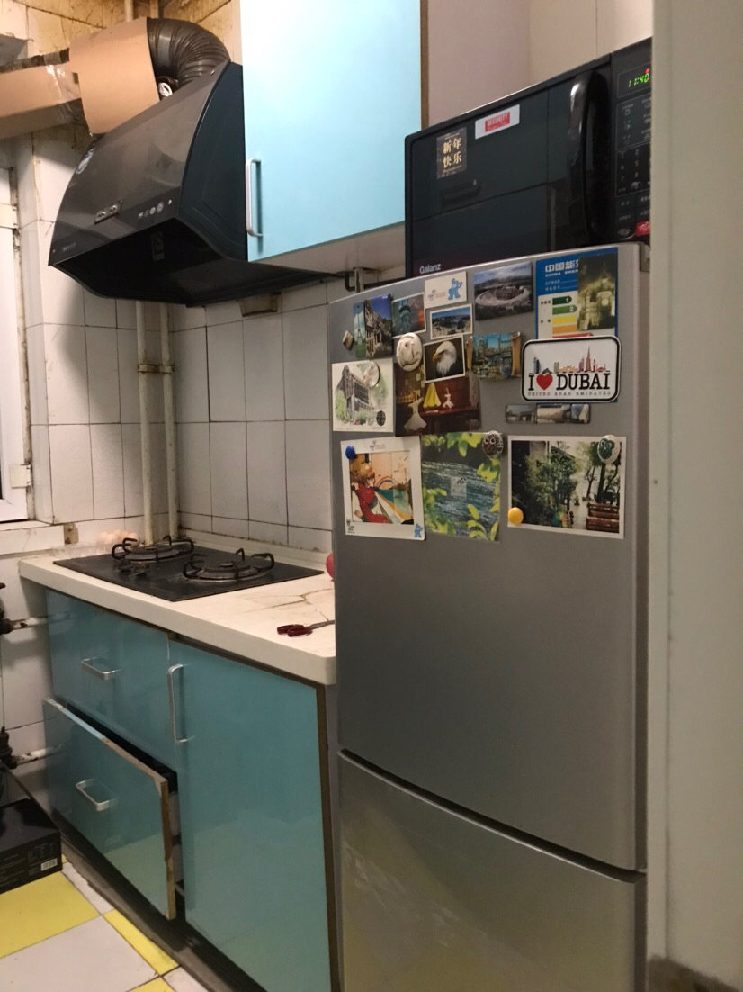 家电方面,冰箱洗衣机微波炉空调热水器一应俱全,还有咖啡机和吸尘器,厨卫用品齐备,都很干净