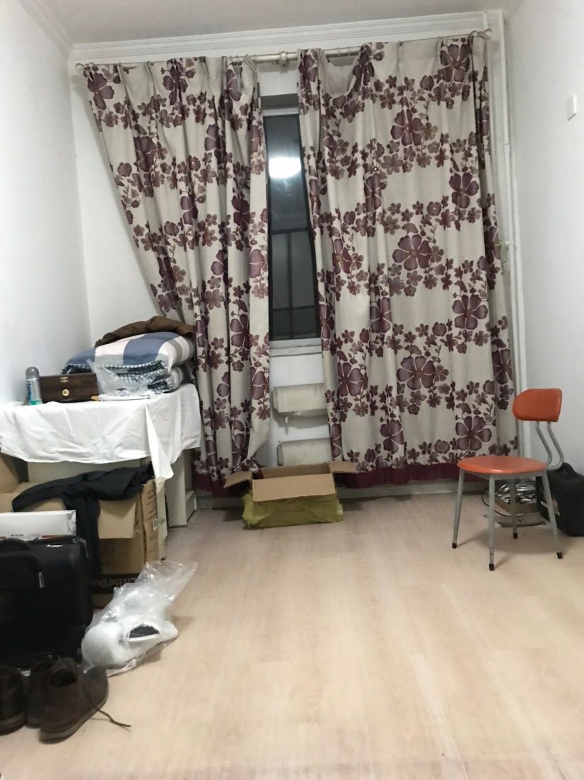 房子一室一厅,客厅很大楼主住,有一层落地帘隔开,出租卧室。