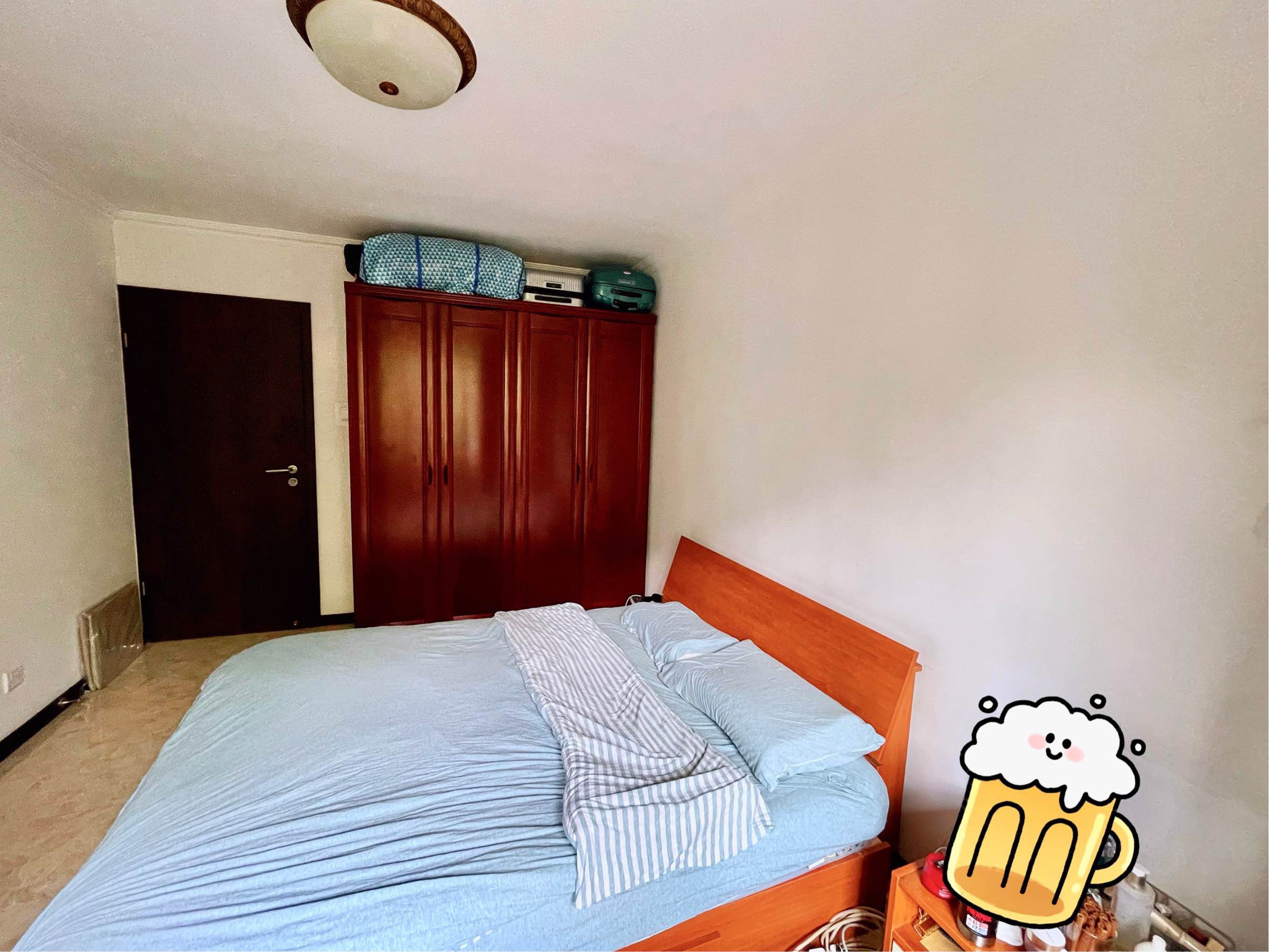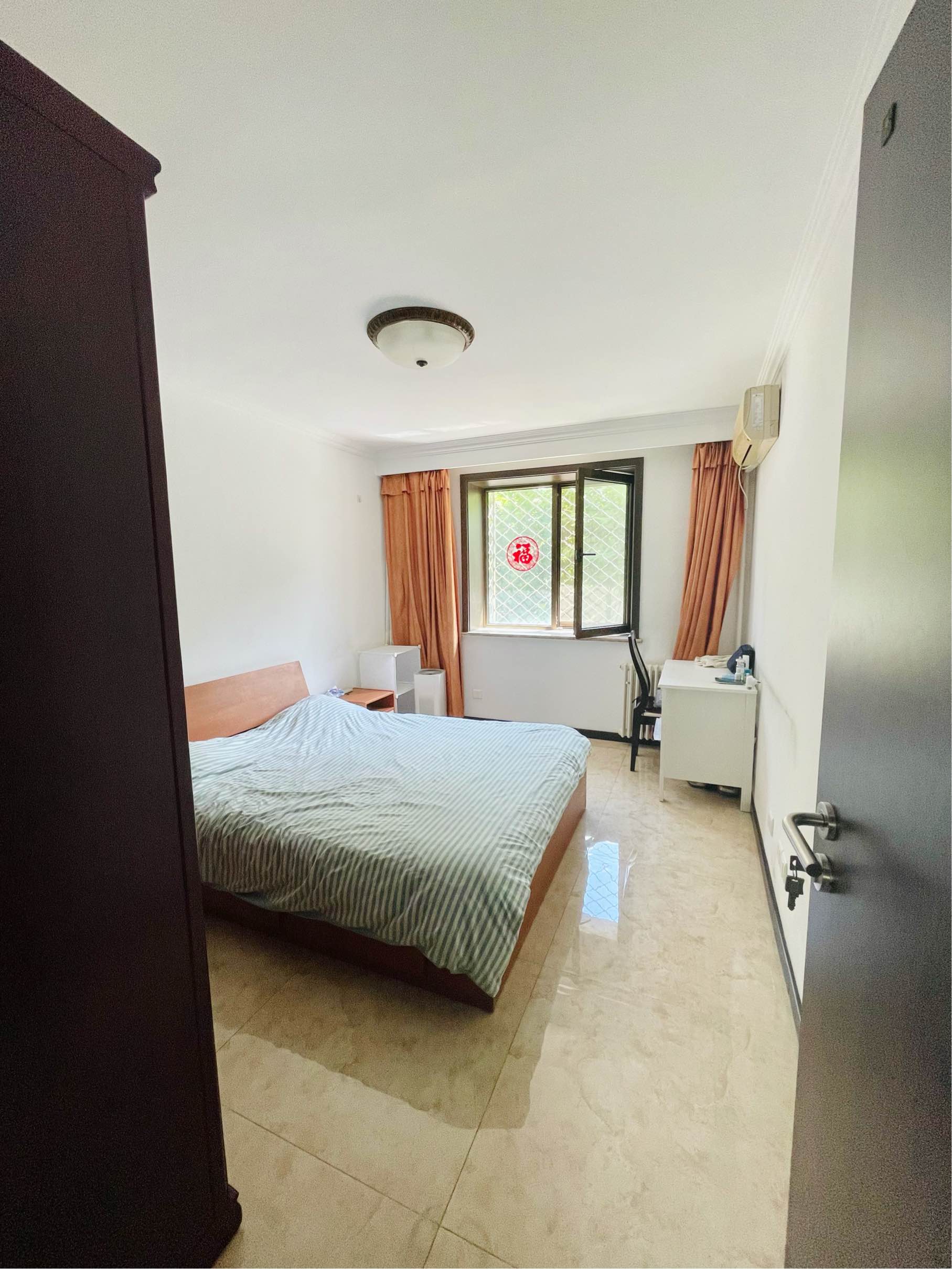 朝南主卧!!!物业好,室友nice! 地理位置: 位置超棒,步行到6/14号线金台路站5分钟,到14号线朝阳公园站10分钟,CBD区域闹中取静,近蓝港、三里屯(步行30分钟)、大望路、国贸,青年路大悦城。小区安静,安全,干净,是朝阳垃圾分类示范小区~ 房屋概况:三室一厅(105㎡),很大的公共空间,包括干湿分离(2个洗手台)的卫生间🚽,及开放式能满足你做任何大菜的厨房🍳,其中要出租的房间朝南,15 ㎡左右,3层/总6层。 租金:4000/月,季付,无中介费(当时选房子一眼看重,直接从超nice的房东那里租过来。) 周边生活: 附近有水果超市,菜市场,大小饭馆,如必胜客、日料、护国寺等;步行350米到京客隆超市,中央公园附近有3个进口超市,生活方便。 我们希望来租房的你: 我们可以说是绝品好室友!!!!(自己都一点不谦虚的说哈哈😄)我们都工作稳定、积极向上。很有分寸感,且礼貌爱干净。希望来租房的你可以也一样,性格大气爽快,别太事儿~ —————— Rented this whole apartment in CBD area, looking for a kindly single female flatmate to take over one of 3 rooms. 3 bedrooms' apt (105㎡), 3th floor, 15㎡ Close to line 6 &14 Jintai Road Station (5mins) and line 14 Chaoyang Park Station (10mins), surrounded by multi restaurants, supermarket, fruit store, etc. very convenient for living. Near to Sanlitun, Guomao, QingnanRoad JoyCity. The roommates are both working professionals. Wish you are the same.We hope you could join us and bring the lovely home with more happiness and love🎈