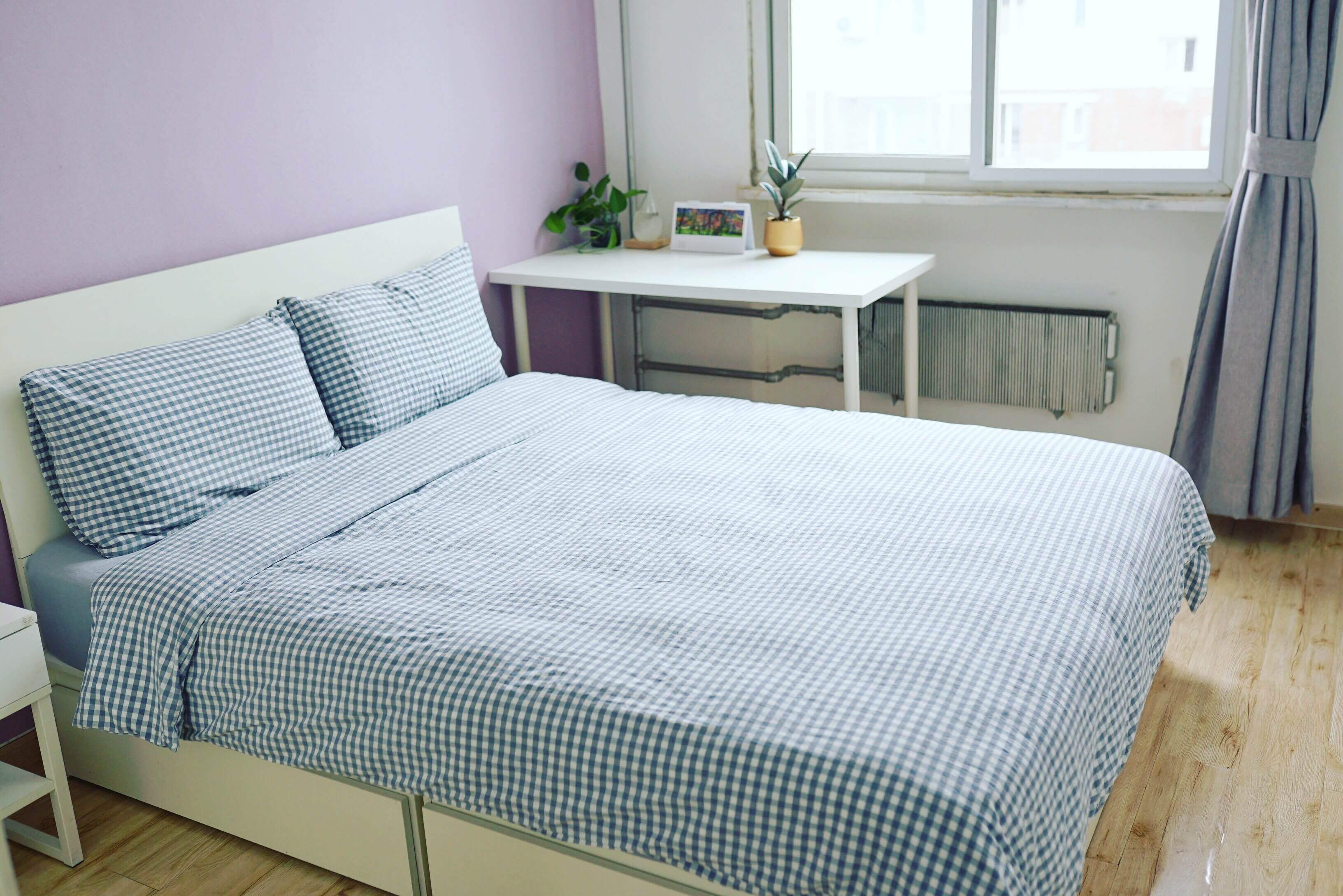 蓝色港湾旁朝南12平干净舒适次卧出租,这是三居中的一个房间,另外两个房间分别住着我还有另外一位特别nice的女生,出门就是地铁口,小区对面朝阳公园,小区门口就是各种超市和餐厅、健身房,走路几分钟就到蓝色港湾和亮马河,骑共享单车十几分钟到三里屯。 超便利干净舒适12平次卧出租,月租¥3380(含各种家居日常维修费、水费、电费、燃气费、暖气费、2000M超高速宽带费用、公共用品费用如桶装饮用水洗衣液柔顺剂餐巾纸厨房纸巾沐浴露洗发水洗脸巾等,以及每月会有全屋保洁)。无中介费及其他任何费用。可短租¥128/天,床品日用品都有可直接入住。 小区东门就是14号线枣营站地铁口,房子是一个80平米三居室,很干净舒适明亮,南北通透。小区门口就是地铁站,小区北门就有京客隆超市、水果店、菜市场、药店、快餐店、餐厅、健身房,生活超级方便。步行几分钟即可到达蓝色港湾购物中心和好运街。毗邻三里屯和国贸。 我是一名互联网设计师,很爱干净也很nice,在Airbnb中被评为超赞房东多年,热爱健身,欢迎小伙伴们来入住! Super convenient, clean and comfortable bedroom for rent. The monthly rent is ¥3380 (including water charges, electricity charges, gas charges, 2000M broadband fees and cleaning fee, etc.) . The house is next to Chaoyang Park (just opposite to the subway entrance of Zaoying station on line 14). It is an 80 square meter three bedroom house, clean, comfortable and bright. The entrance of the community is the subway station, and there are supermarket, fruit store, vegetable market, pharmacy, restaurant and gym near the community, so the life is super convenient. A few minutes walk to the Solana shopping center and Lucky Street. It is adjacent to Sanlitun and Guomao. I am an Internet designer. I’m very friendly. I have been rated as excellent landlord in Airbnb for many years. I love fitness. Welcome to stay here!