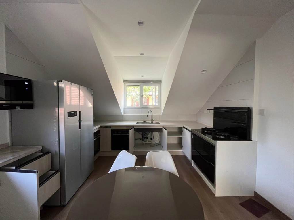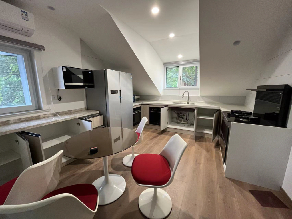 离常熟路地铁很近 房子是历史保护建筑的老洋房, 没有客厅,只有餐厅跟开放厨房 有一间卧室,套内卫生间 全屋新装修~厨房西门子双开门冰箱,微波炉, 烤箱,洗碗机设施齐全。 另外带一个户外小露台。 诚意转租,有意者可联系看房~