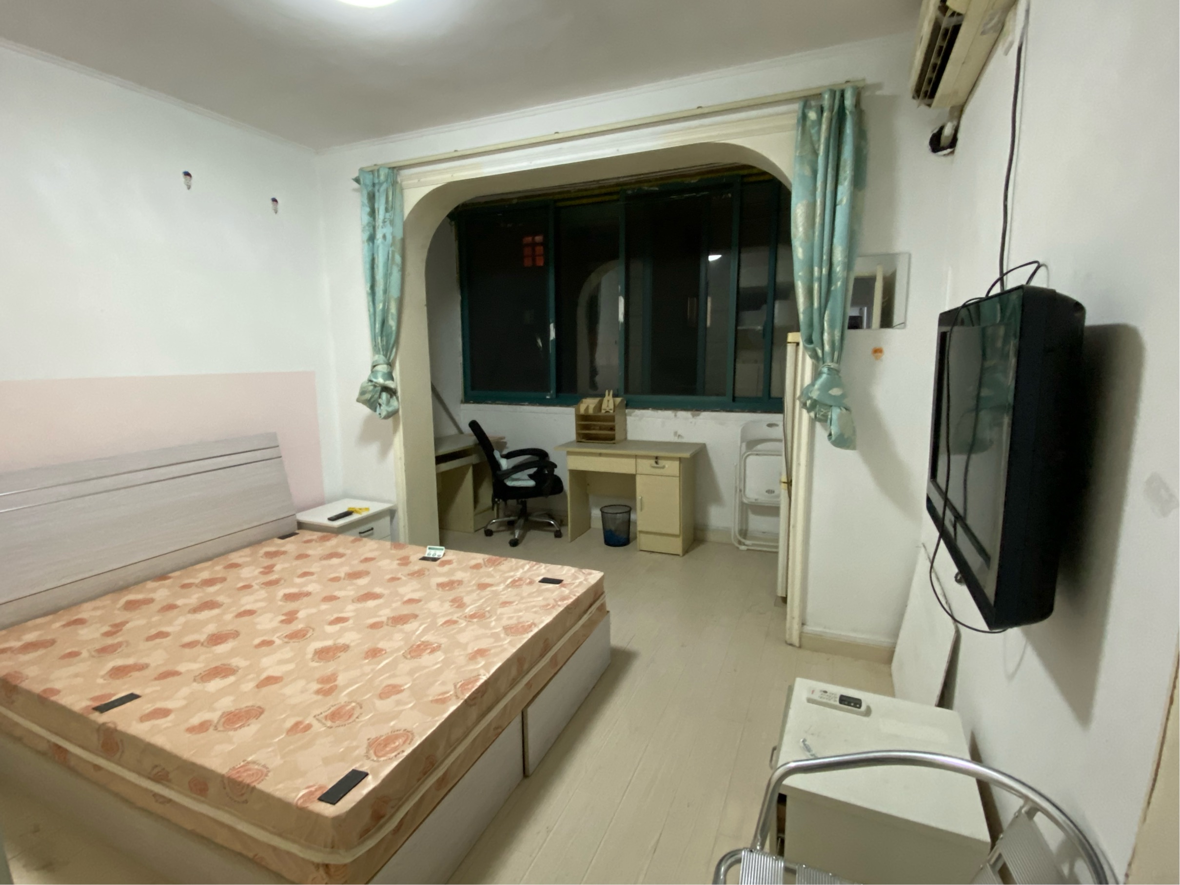 【2室,无中介】淞虹路地铁站100米。按一房价格便宜出租,性价比高!一房改两房,一大一小。 优势1,小房间可以当成书房,大房间做卧室,朝南,阳光充足,视野开阔没有遮拦。 优势2,空调、冰箱、电视机、洗衣机、橱柜、写字桌等生活设施俱全,煤气灶、微波炉全新。屋内装有Wi-Fi,路由器,IP高清电视可看。拎包入住。 优势3,旁边有蔬菜水果店,超市,美容美发店,健身房,还有大融城商场,非常适合居住生活。 优势4,我是房东,直接交易,没用中介费。可以长租。