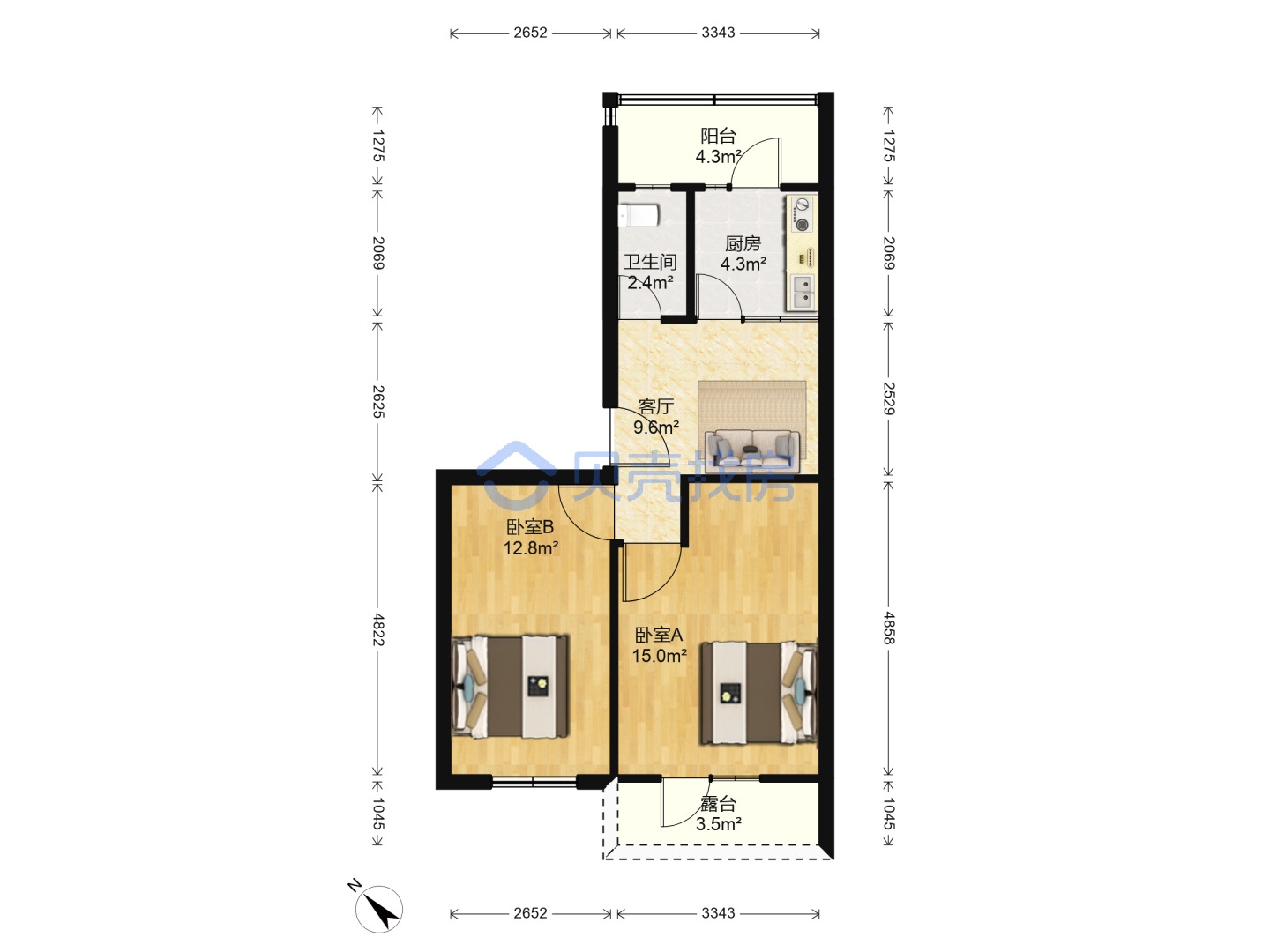 2 臥室/1 洗手間