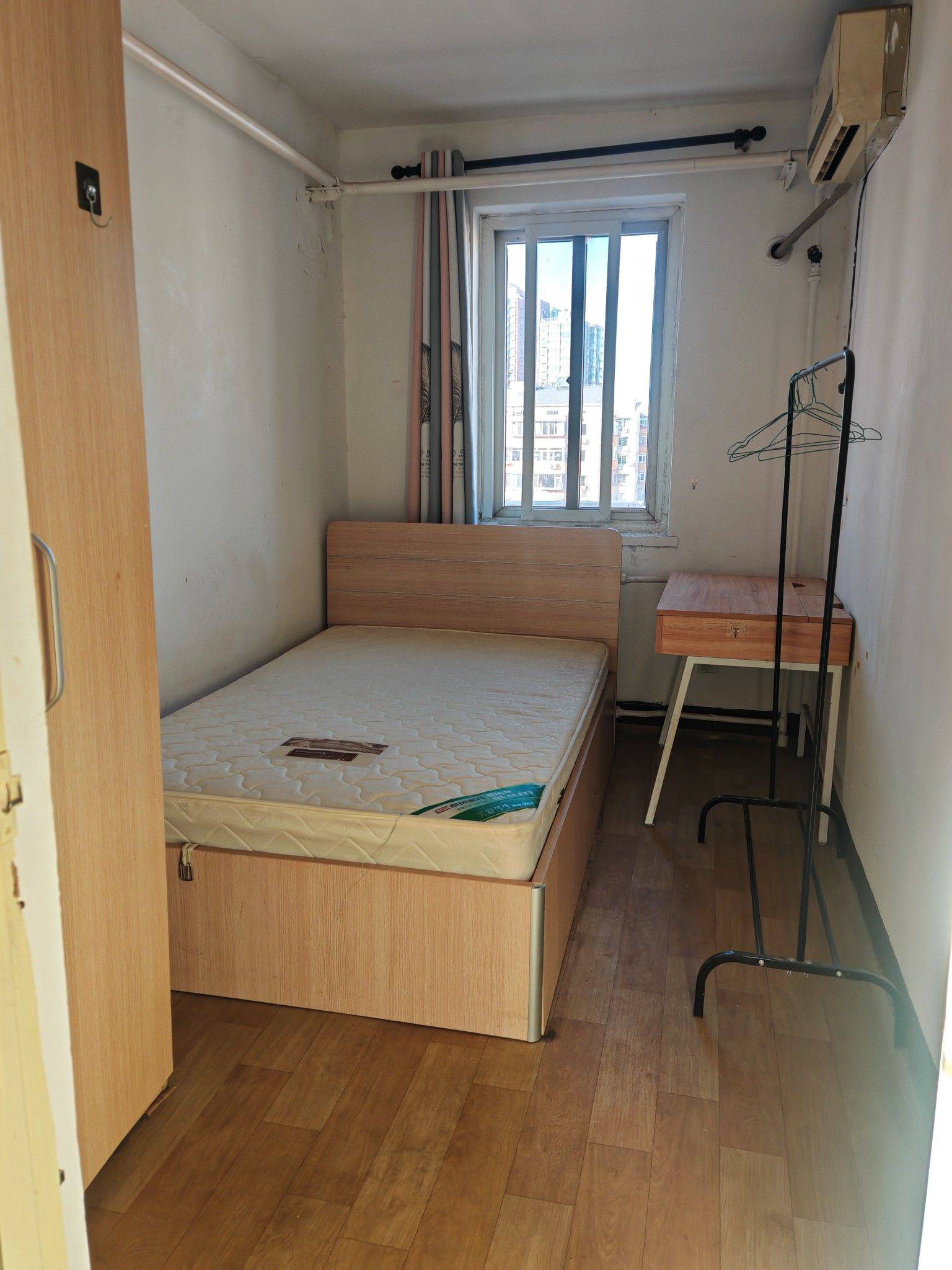 房子小三居,出租户型图中卧室A,A只适合一个人住。有独立空调,衣柜,房子布置跟户型图一样,房间维持原格局,无任何隔断。房子在6层,没有电梯,厨房和卫生间是简单装修。房东直租,采暖费和物业费房东付,水电气租客自理。原租客临时退房,可随时入住。另外两个房间是男生。