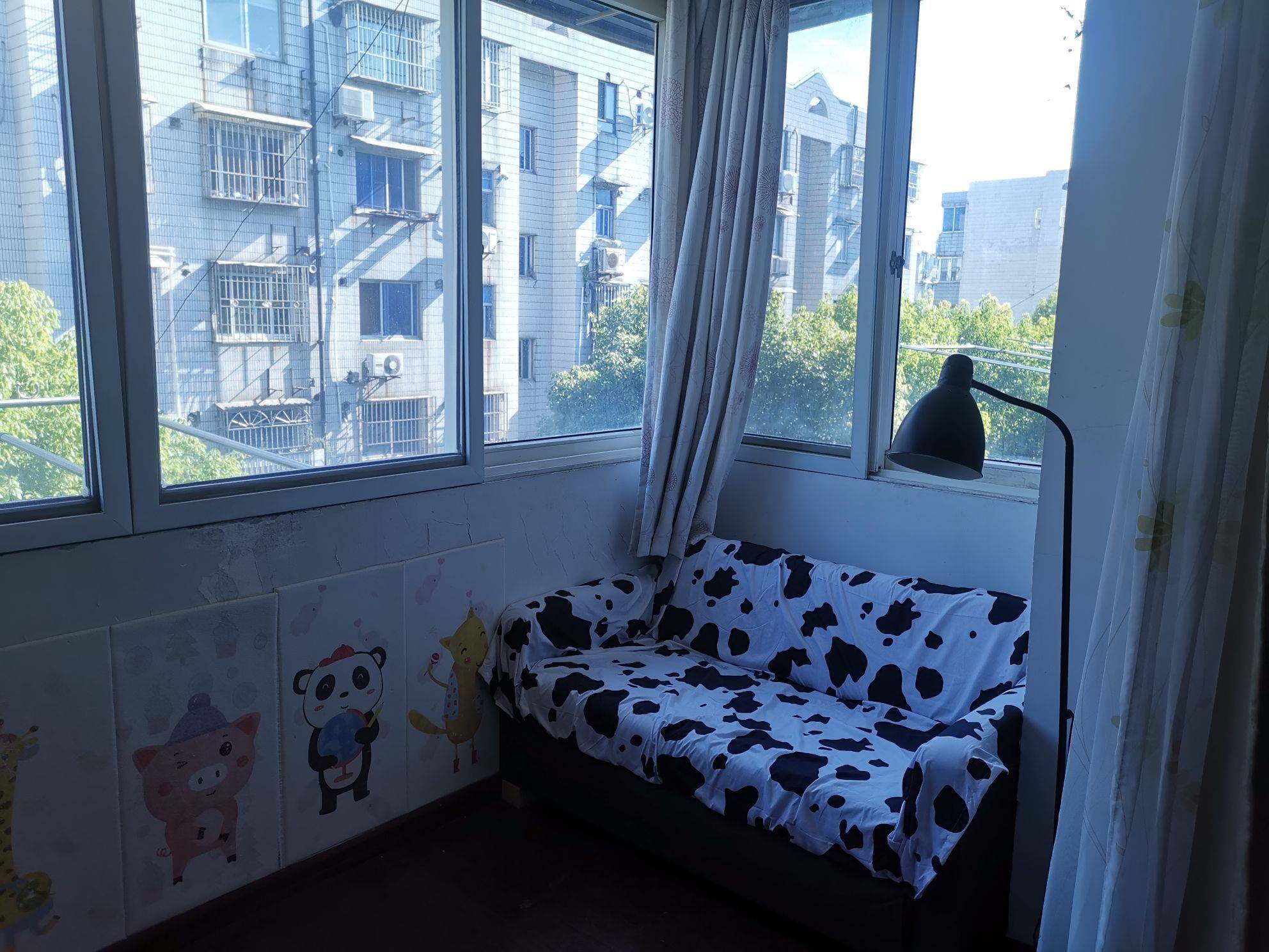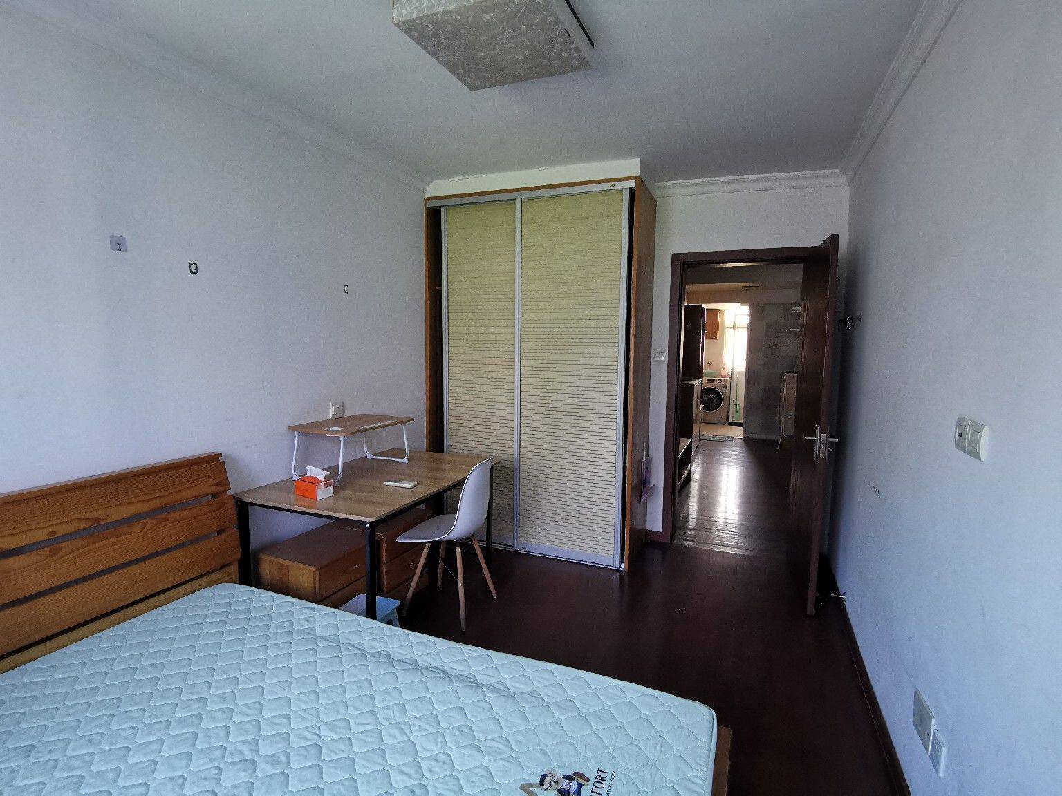 六楼的四楼,二室改成三室,其中两间卧室朝南,书房朝北。南北通透。配备两张1.8x2m大床、空调、冰箱、洗衣机、沙发、有线电视、WIFI。房间已清空,可拎包直接入住。