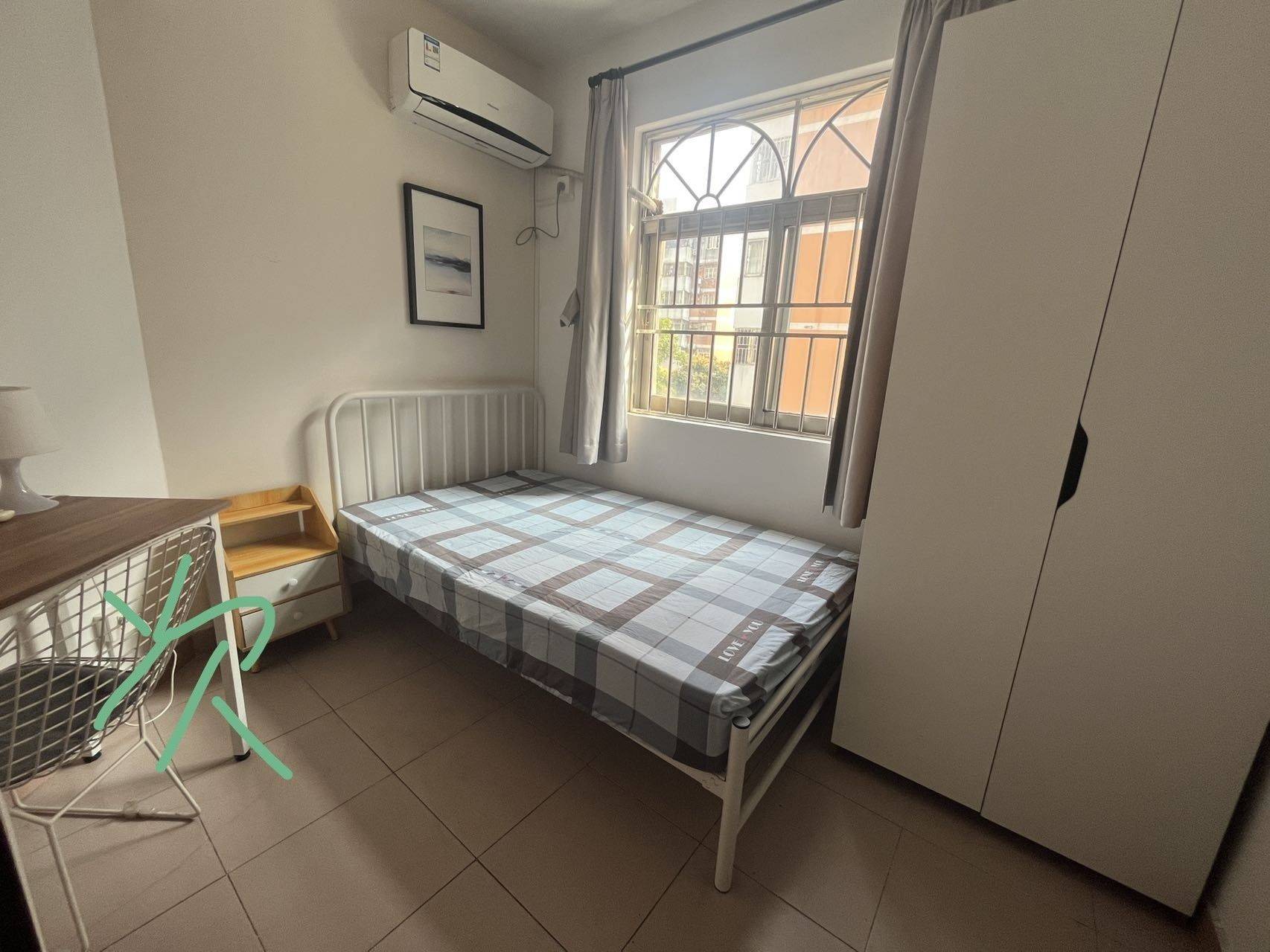 上梅林振业梅苑小区四室一厅一厨一卫合租房,步梯中间楼层,采光一级棒,押一付一。交通便利,门口100多m就是地铁站G口(地铁4/9号线)。对面就是卓悦汇,是大型shopping mall,购物逛街非常方便。小区门口餐饮药店,医院各种配套齐全。室友都是福田cbd上班族。 房间配有空调、床、衣柜、书桌、Wifi、智能锁。 公共区域配有: 餐厅餐桌、卫生间、洗衣机、冰箱、厨房配有微波炉、燃气炉、油烟机,可做饭。小区物管设有楼栋门襟。 其中: 1、次卧(图5):比较小(适合拎包入住) 租金费用:租金1700+150元(宽带+水+燃气+物业)+ 电费(实际分摊 2、小卧(图1):比较小(适合拎包入住) 租金费用:租金1600+150元(宽带+水+燃气+物业)+ 电费(实际分摊) 3、主卧卧、大卧(已租) 要求:作息正常,不养宠物,不抽烟。 工作日晚上、周末可看房