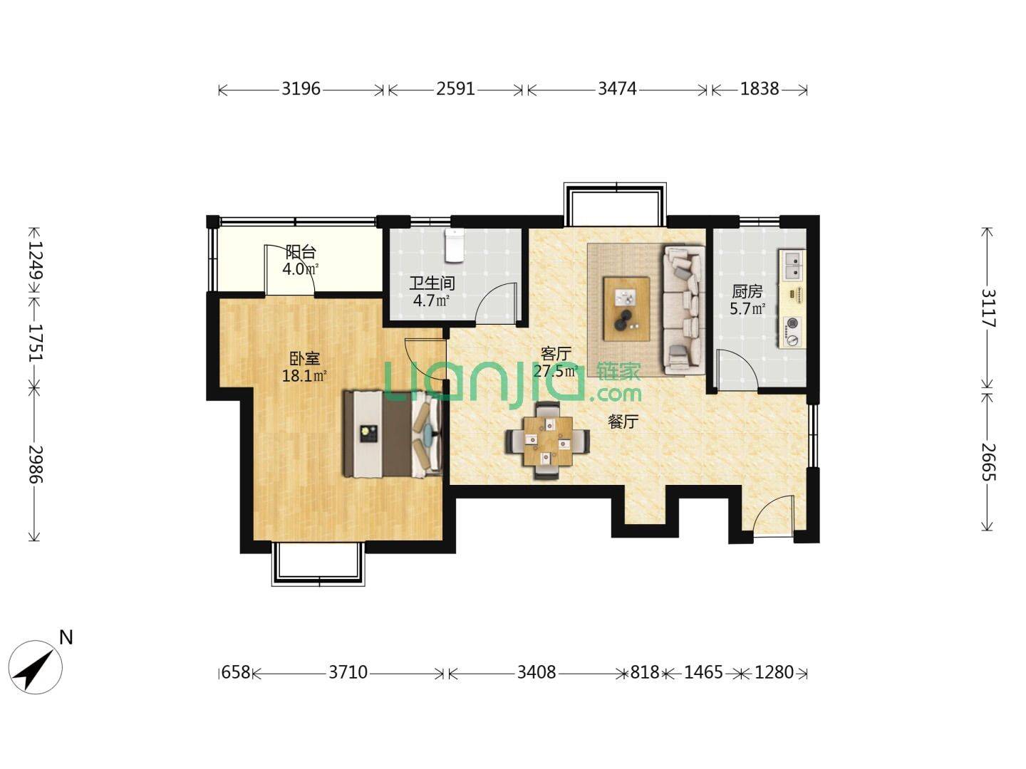 Rent : 6600RMB/M