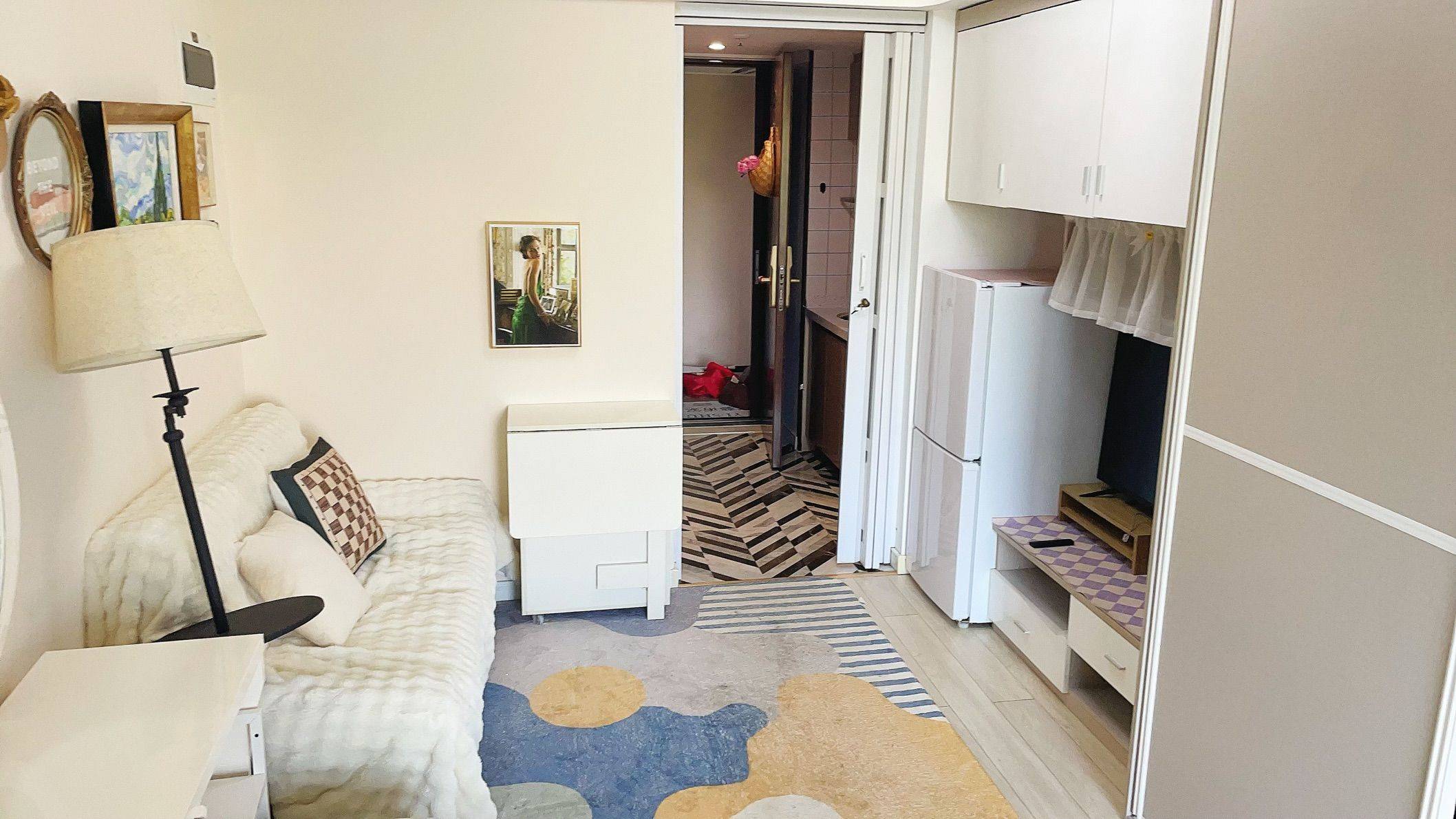 1,住宅性质,民水民电,之前是自己居住,所以家具家居选用也是按好的来,衣柜是索菲亚定制,梳妆台是全友。空调格力一级变频,冰箱海尔,洗衣机TCL波轮,电视机小米43寸。方太抽油烟机、海尔热水器等 2,床是1.5米的。沙发1.6米,靠背可放下来当床。桌子为折叠桌,节约空间。厨房和房间之间有折叠门,方便房间开空调。大门做了折叠漏空门,天气热的时候可以安心锁门通风。 3,房子各个细节和软装都精心设计过,实地看房可以感受得到 4,江边高档公寓,密码锁,有24小时保安,小区环境干净整洁卫生,而且小区是5年内新小区,舒适看得见。平时可过马路去江边散步跑步,很方便。楼下就是公交站 4,需要租客有稳定收入,长租,随时看房。这个月就会清空,可随时入住。不能养狗,小房子禁不起折腾。入住时间:1月15日