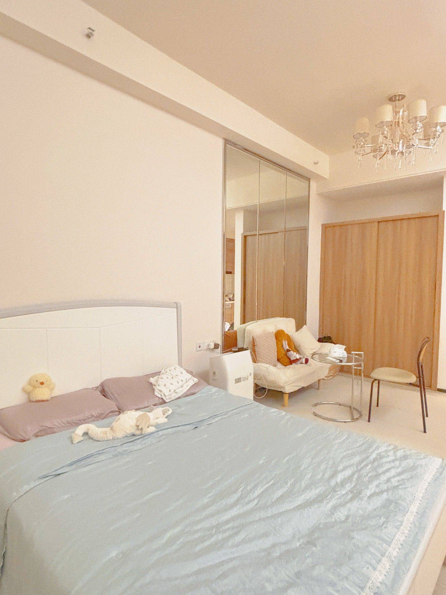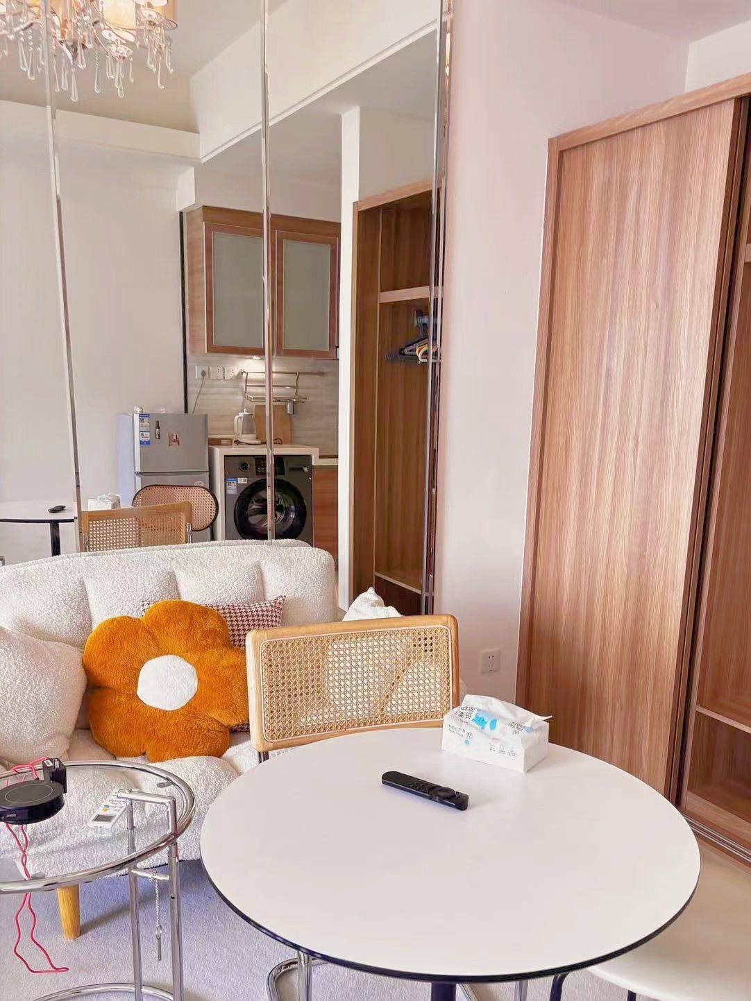 韩式奶油风 24年开始使用的新房 天府三街腾讯背后 一直女生住 去年添了移动电视架 现在住的女生因为工作要搬家到天府新区,3月15日起可租 房东在五街工作,方便联系