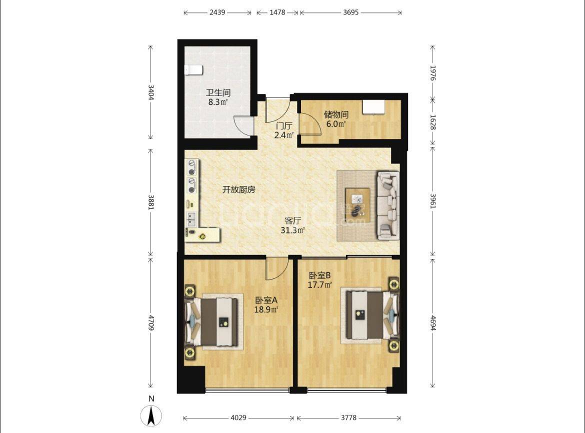 2 臥室/1 洗手間