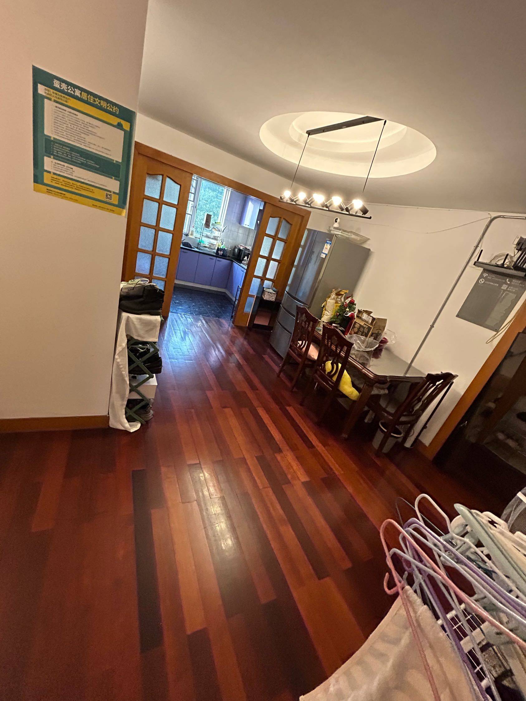 距12号线东兰路站200米,小区门口有公交站,周边商业配套齐全,漕河泾开发区也在附近。现有的3家房客都是年轻的单身白领,和房东签约,单身优先,宠物谢绝。电梯房3楼,房型图的卧室d室次卧,原始户型,南向,房间很大,厨房客厅厕所公用。*3家合用卫生间的2家都是男士,希望男士入住!!!