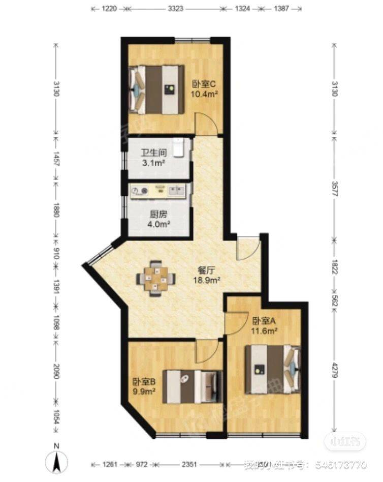 Rent : 2200RMB/M