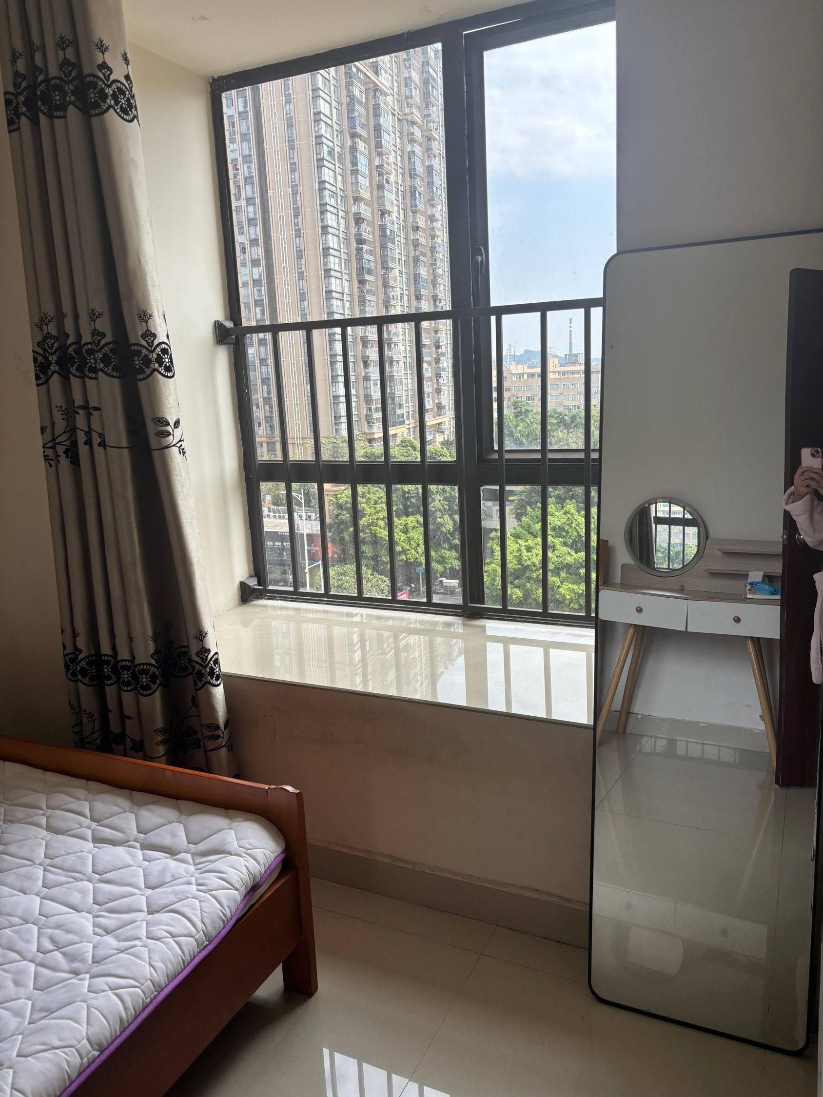 黄埔区,5号线7号线大沙东地铁站,小区房,次卧招室友仅限女生,1000/月 概况:三房一厅两卫,7楼电梯房小区房,朝南采光好,通风,便利,100+平米,家电齐全。 交通:5号线7号线大沙东地铁站,步行15分钟,珠江新城30分钟地铁直达。楼下有公交车站(黄埔体育馆站)。 室友:目前住三个女生,主卧的女生男朋友会经常在,但基本不出客厅(除了晒衣服丢垃圾),主卧有独立卫生间。职位是财务,律师,人事。 生活便利:楼下有24小时便利店,美宜家,菜鸟驿站,卖菜小店等。 出租详情:一年起租,出租次卧一间1150/月。整租价格4000元有合同,主卧1750,中卧1250,小卧1000,主卧和中卧朝南有阳光,租金押二付一,水电费燃气费平摊人均80。网络宽带为电信1000M,46/人。管理费每月68.66/人。 家具:家里厨具齐全可共用做饭(有洗衣机冰箱微波炉烤箱锅具消毒碗柜电磁炉燃气炉高压锅电饭煲破壁机等),客厅无空调,每个人卧室内有空调,有洗衣机,无衣柜。 卫生情况:卫生每人轮流负责一周,每两个月请阿姨彻底清洁一次费用每人66。 其他:一人入住,携带宠物需另外协商。