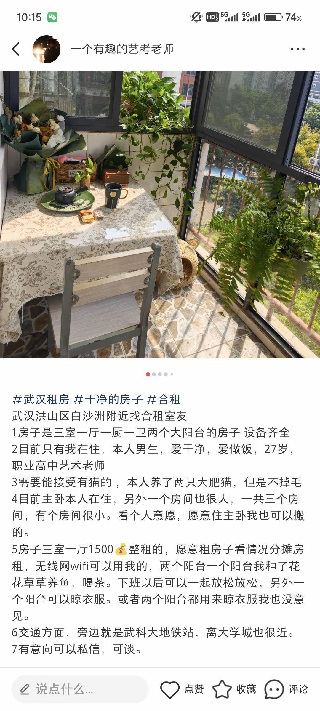 房子小区还挺好的,周围也有很多自建别墅小房,周围就是大学城,地铁在5号线。本人爱干净热爱生活,合租比较温暖。