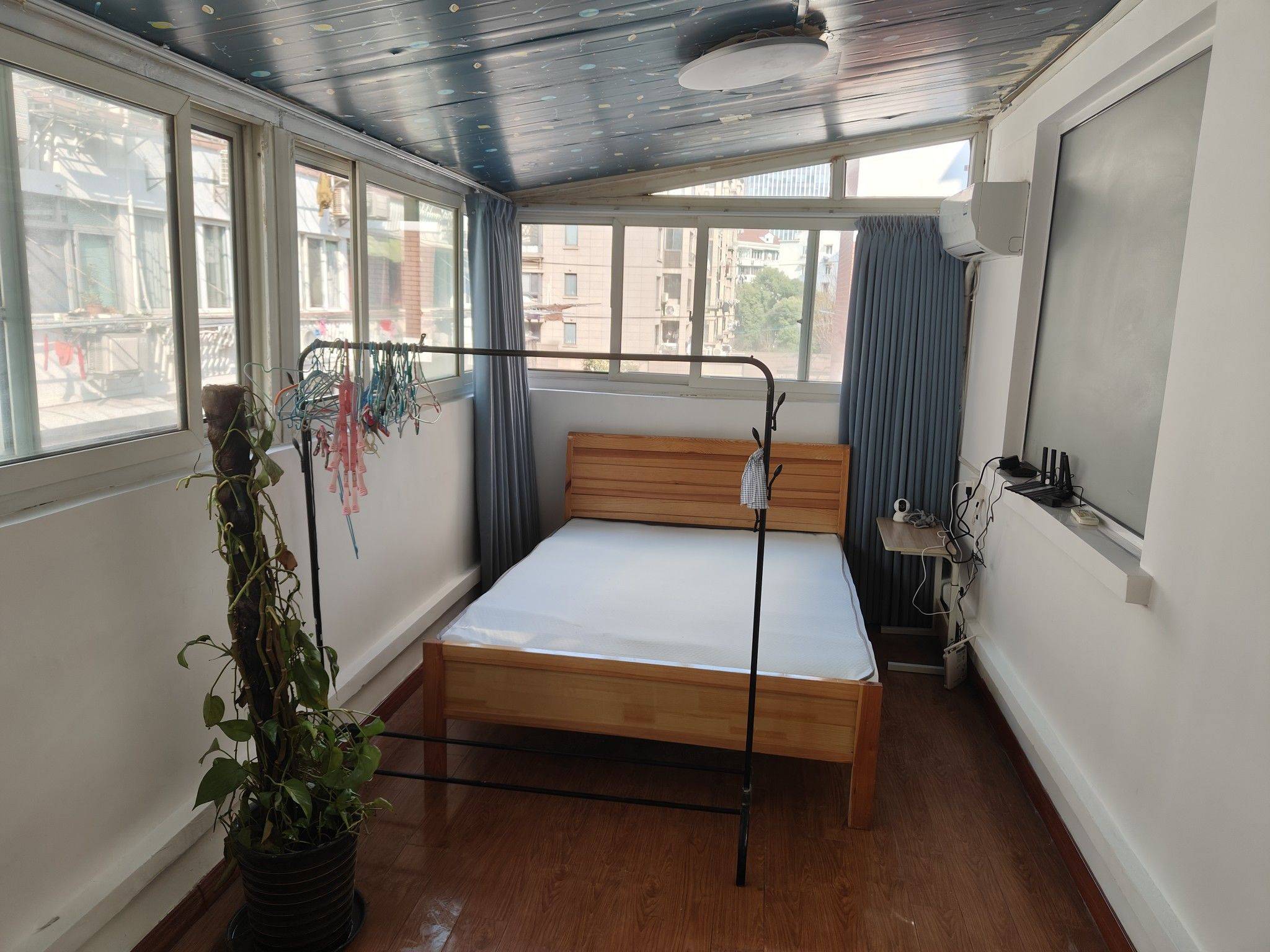 内环内房东诚意直租,中华小区2室户全明 以下信息全部透明公开说明,90%你想知道的这里都有了,全部是我一个个字打出来了,没有复制粘贴和虚假广告。可以觉得合适再联系,节约彼此时间。 诚意出租,描述真实;个人非中介,请相互尊重,不要来约看房又不回复,毕竟修改时间或者取消几个字就能说清楚。一般工作日晚上或者周末都可以,提前约时间就好 租客4月底搬走即可入住,5月起租,搬走原因:已自购房屋。 没有其他收费,只有租金押金。水电费自己支付宝绑定了交。 面积和户型: 有赠送面积,所以套内实际居住面积近50平,2室1厅1卫,窗户多,全明,白天不开灯也很亮堂 可做大1室1厅 床板可拆走 朝向: 朝南房间,朝东房间,都外窗,通风采光佳。 家电:必须的家电都有,空调,洗衣机,冰箱,热水器,油烟机。网络也接好了(不单独收网费,进来第一天就有网络不用自己装啦,路由器都齐全的)。 楼层: 4楼步梯,顶楼,爬楼不费力。楼栋在小区内,不临街。楼道门口有空间可以放鞋柜 交通: 虹桥路地铁站,小区名字: 中华小区。步行实际距离:3或4号线700多米,10号线800多米(真实距离,自己亲自走过,坐不同线路最近的口不一样,地图导航并不准确) 居住证:可以 ,需要什么材料这边都可以配合, 线上就可以提交 房屋状态: 窗帘纱窗都有 拎包入住 自住装修 温馨小屋 房东直租:是,房子是我自己的,我会准备好合同,保护彼此利益,条款内容不是太过分的都可以商议 雷区说明:介意顶楼(哪怕是4楼)的,介意有赠送面积的,介意不想要签双方协议的(没有霸王条约,协议的内容可沟通),介意九几年老小区的,以及非常需要固定车位的朋友可以划走。 入住人数:2-3人,非串串房,整个一套出租,拒绝陌生多人合住。宠物需提前告知