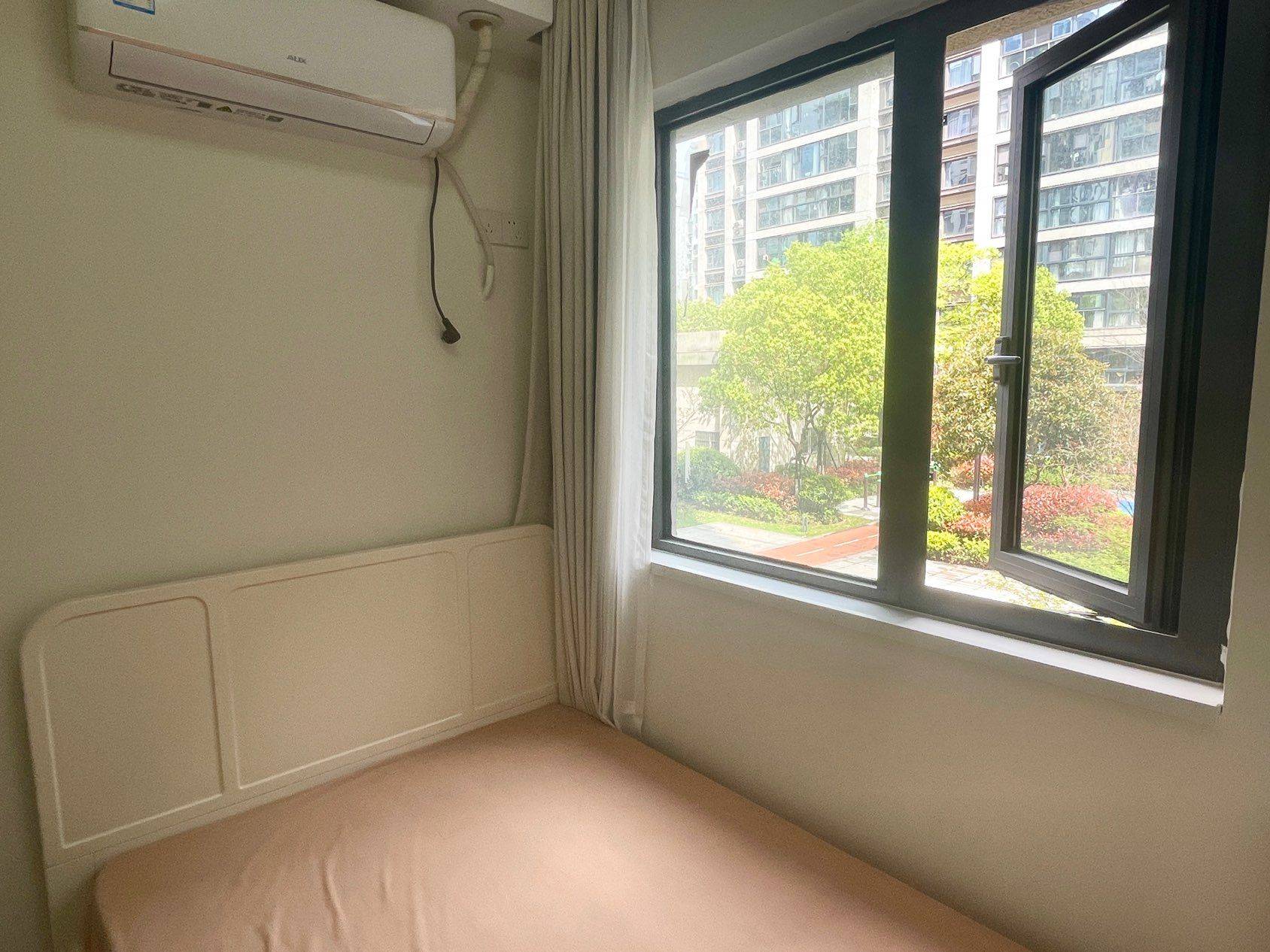 【房子概况】原户型四室两厅两卫一厨一阳台,2022年底房东自住装修,该房间实际居住只有1年。房子装修如图,因为本来是房东自己用买的家电都不差:全屋世友木地板、老板厨房家电、松下变温三门冰箱等等。 【房间介绍】软装:1.2m*2m全友实木床、顾家双门衣柜、窗帘、桌椅、奥克斯壁挂空调。床底🉑放东西,朝向北,早晨有太阳。 【小区介绍】明熙府,2021年完工交付,新&绿化好&地下停车&物业服务好&门禁安全。小区住户多,多是一家人自住。 【出行、周边】出门就是公交车335,地铁站、社区接驳车;地铁站距离1km,早高峰晚高峰坐接驳车很快;周边有大型超市和商场。 【公区】客厅、餐厅、厨房、卫生间、阳台是公用的,卫生间和洗衣机两间共用一个。 【优势】软装有品牌有保障、家电低能耗;每个房间分了独立的储藏区、冰箱、阳台晒衣;小区环境好,商品房,以自住为主。 【硬性条件】只找女性,不能养宠物,限1人 【多少钱、怎么付】诚心想租的价格可谈、支付可谈,欢迎来看房,随时可入住。