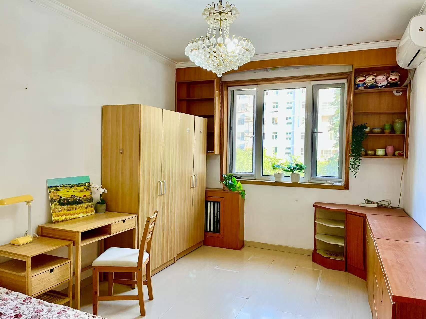 【地理位置】近6、9号线白石桥南地铁站,中国劳动关系学院家属区 【房屋整体情况】3居室,每个房间各住一女生。家电齐全,集体供暖温度好。小区系中劳家属区,干净安静,保安24h值守。 【房间情况】南向大卧室,约16㎡,采光很好,储物空间充足,1.5m床。房屋隔音效果好。 【室友情况】全女生合租,每个房间只住1人。 室友都很安静、爱干净、热心又有边界感,A+级好室友。 希望有缘的你不抽烟不养宠物不带异性回家,愿意共同保持公共区域整洁。1年起租。