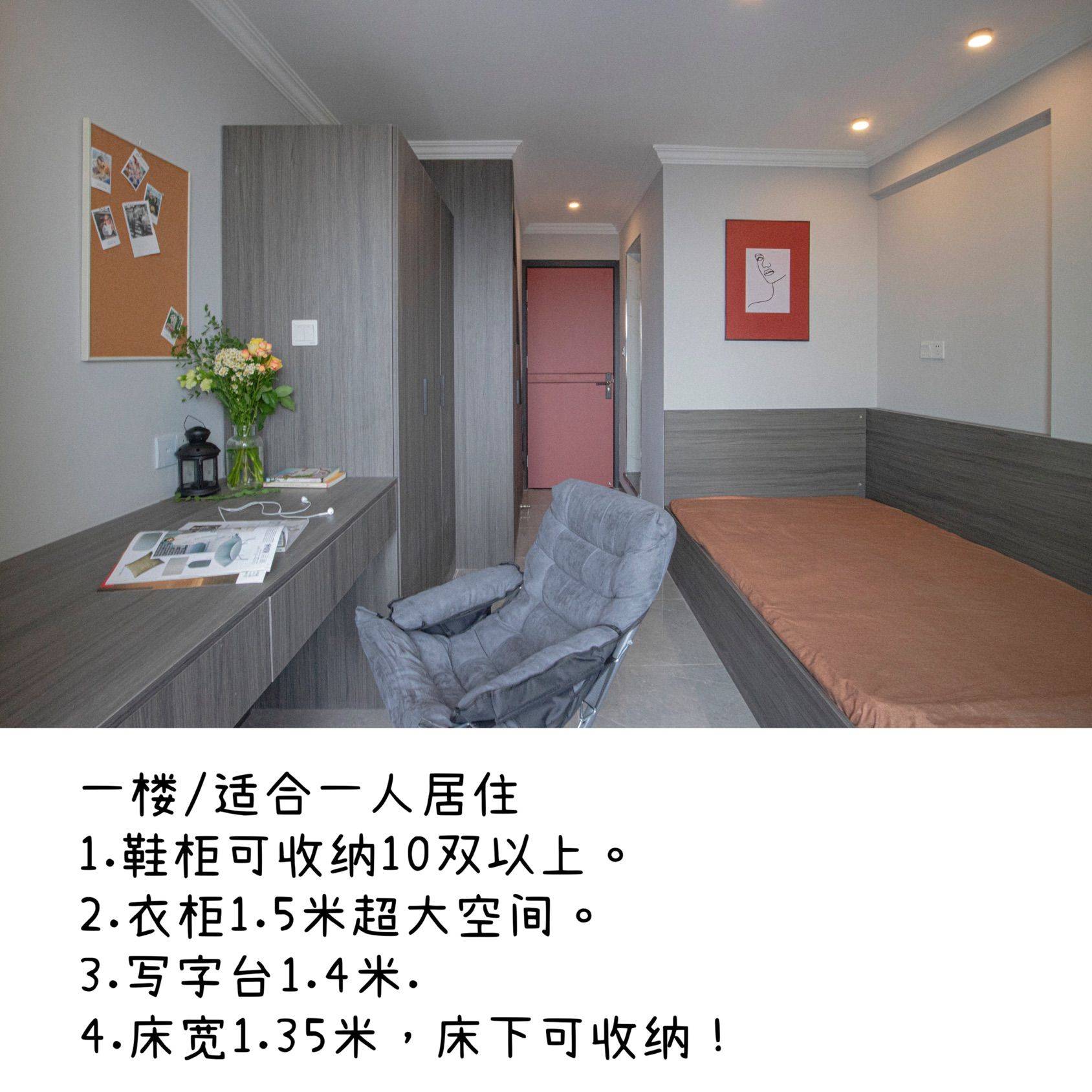 类型:loft复式公寓改两层 出租:楼下的一间 价格:1000元/月(包含物业费)(其他费用自理) 内容: 1.水电气三通(智能水电表扫码充值使用) 2.鞋柜(最少可放30双鞋) 衣柜(1.5米长大衣柜) 书桌(1.5米电脑桌可同时放下电脑和化用品) 1.2米床柔软舒适(床下也有足够收纳空间) 3.洗衣机 冰箱 厨房 都有 4.27楼朝东向,早上可以看到漂亮的日出! 5.楼下就是轻轨站和龙湖商场和夜市。 注: 只租给一个人住的单身公寓 禁止养宠物 半年起租 押一付三
