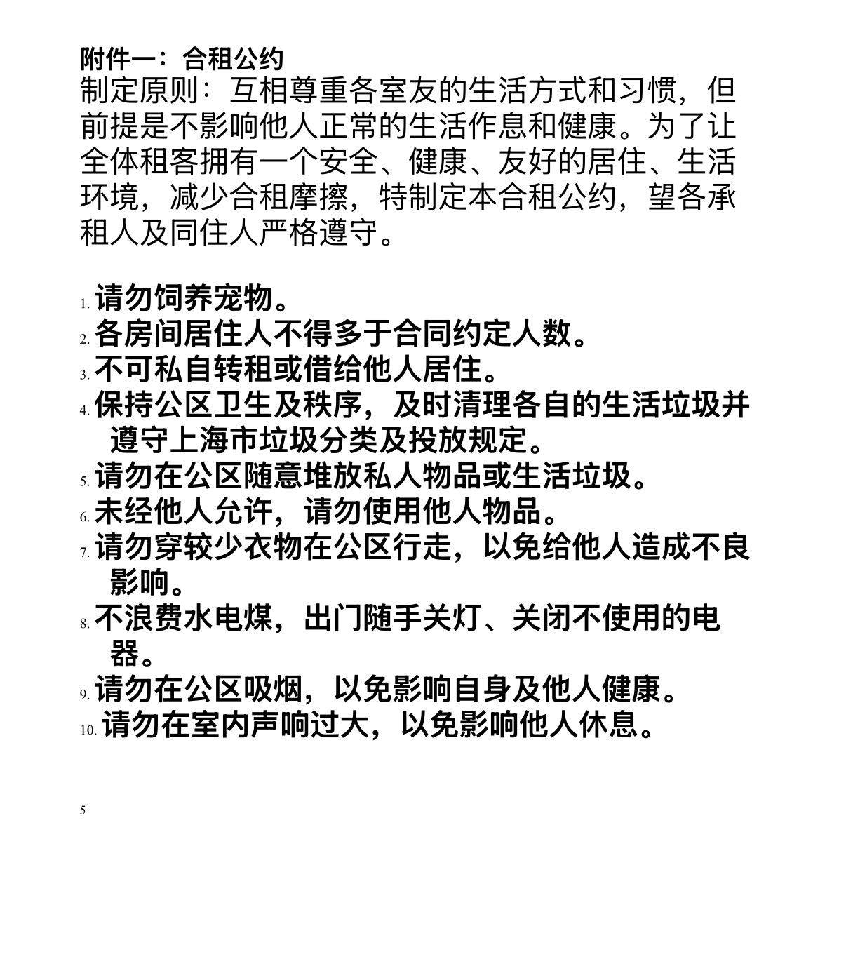 对租客的基本要求:遵守合租公约(写入合同里的),限住一人,合租习惯好,易相处无不良嗜好,不养宠物。