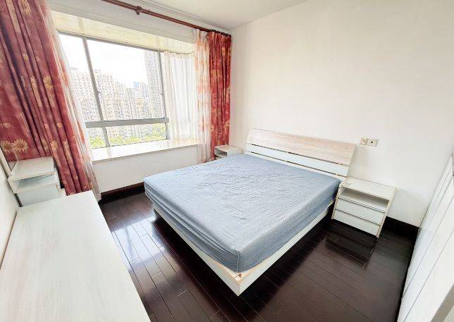 有固定车位、 冰箱、厨卫电器均品牌全新,密码锁随时看房随时入住。9800元/月,陪读家庭常住可议价❤️联系电话 1.[房型正气] 2室2厅1卫,103平,房型正,南北通透·采光通风强,落地式飘窗双阳台·开放式厨房,布局舒适合理格局周正。 2.[精致装修] 风格清雅别致,业主一直自住,之前没出租过,自家保护的好。 3.[采光充足] 楼间距很大、总楼层26楼,中上楼层,无遮挡、通风好、视野采光棒! 4.[视野开阔] 本楼层可直接观赏外滩三件套(东方明珠、金茂大厦、中心大厦)。 5.含近一年WiFi及有线电视。 6.小区对面盛源生活广场,星巴克咖啡、麦当劳、全家、必胜客、海底捞等,孩子培训机构等。 7.已空关,可随时入住。家有钢琴,不需要的业主可搬走。