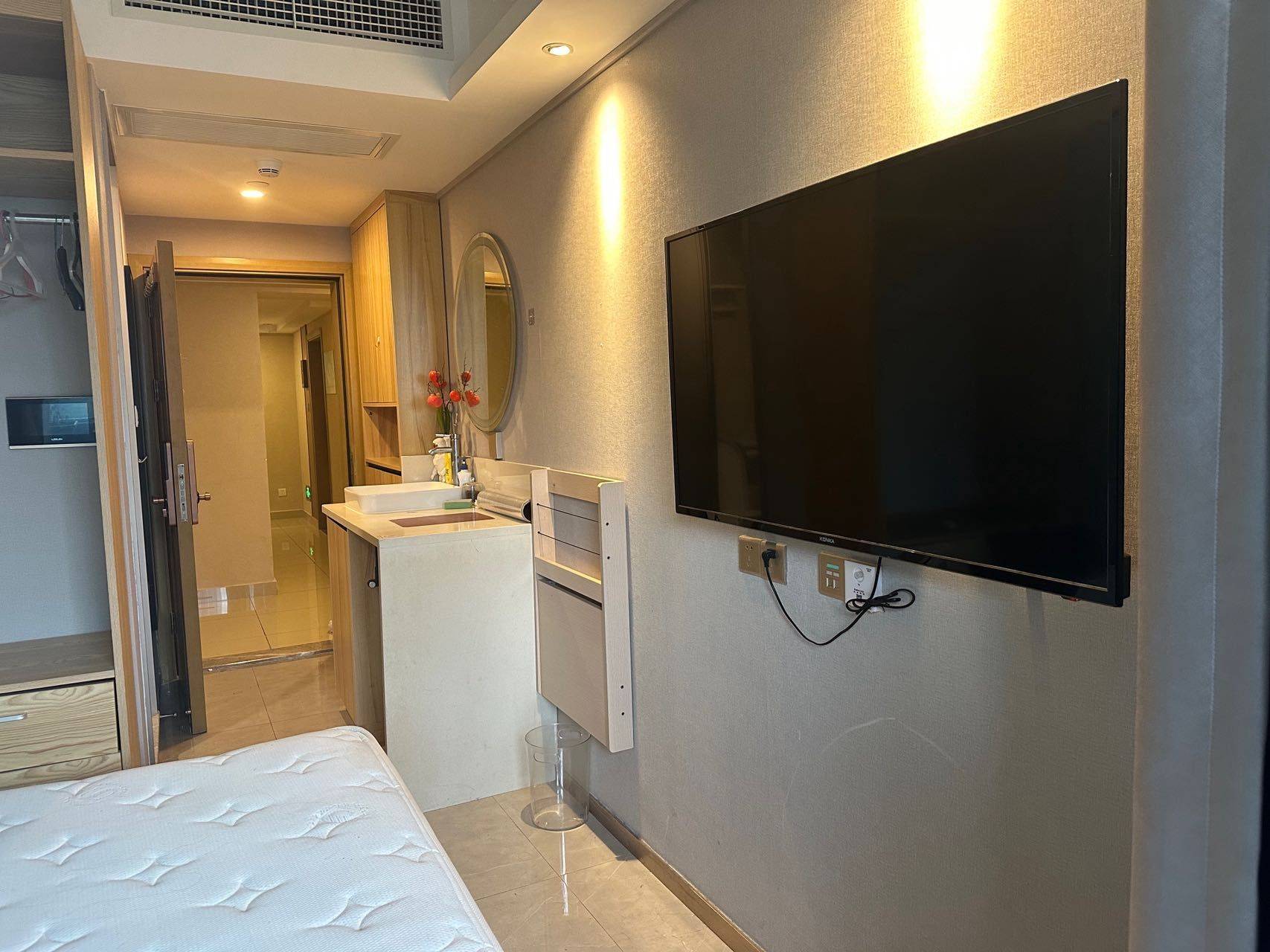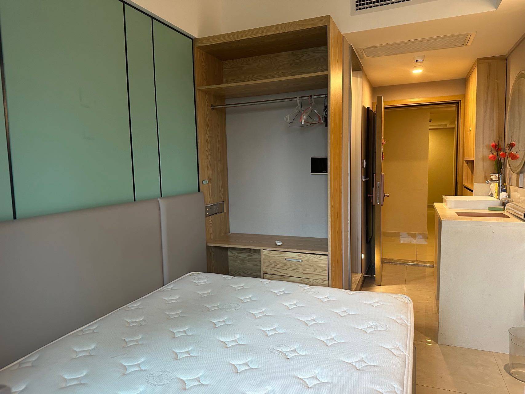 地铁上盖拎包入住 新世界大厦,出门就是晒布地铁口,公交地铁都非常便利。 整个社区基础设施非常完善,房间内基本家具家电齐全,可以拎包入住。 楼盘2019年完工,很新,精装修。 面积不大,二十多平,但是有阳台洗手间,一个人住很合适。 高楼层且朝南,安静向阳且通风。租金三千元每月,押二付一。业主直租无任何中介费用。