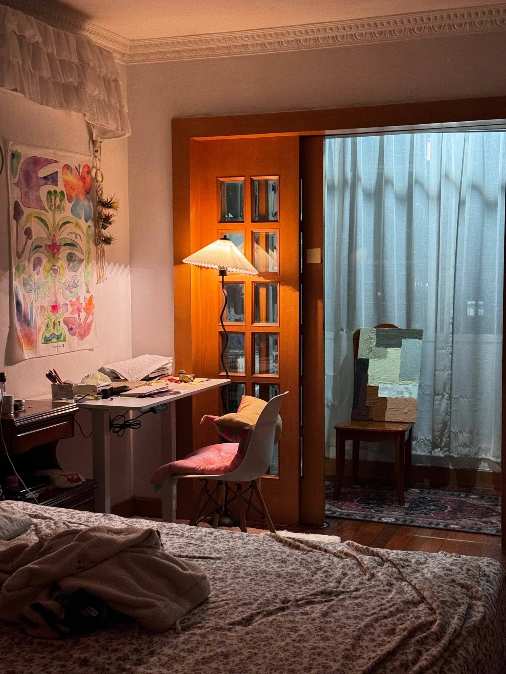 设备:这个房子虽然装修不是特别新,但是我买了很多家具,地毯、沙发、可升降书桌、人工学椅,所以整体还是很温馨实用。客厅有投影仪、房间有电视,还有wifi都可以用,还有自动饮水机。我不在的这三个月不会带家具产品走,火锅、电饭锅、炒菜锅都会留下来,你可以领包入住!(但是我需要半个衣柜放衣服,衣柜很大希望你不介意) 布局:很方正的边套,每个空间都有窗户,阳光很好。客厅和房间还有阳台实际面积蛮大的,卫生间和厨房较小。 交通:距离二号线地铁站娄山关路3分钟,3站到静安。附近有5个商场,周边健身房、菜市场也很多,靠近古北,日料店特别多! 时间7月底(我离职时间是7.25号)-10月底(我回来退租,或者你直接和房东签合同,但是私人物品我就变卖了)