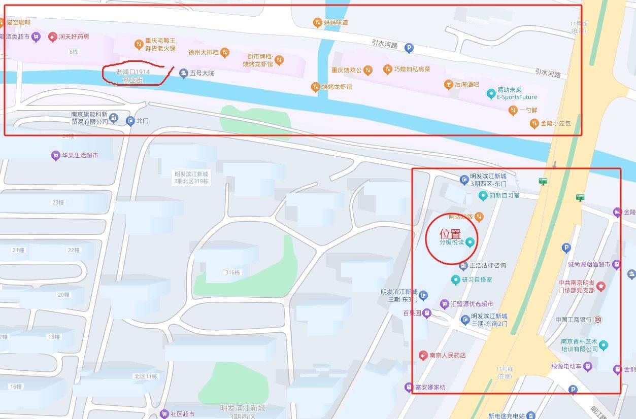 隔壁是老浦口1914商业街,对面夜市小吃;附近2-3公里有万象城购物中心、弘阳广场商业区,生活休闲娱乐便利。