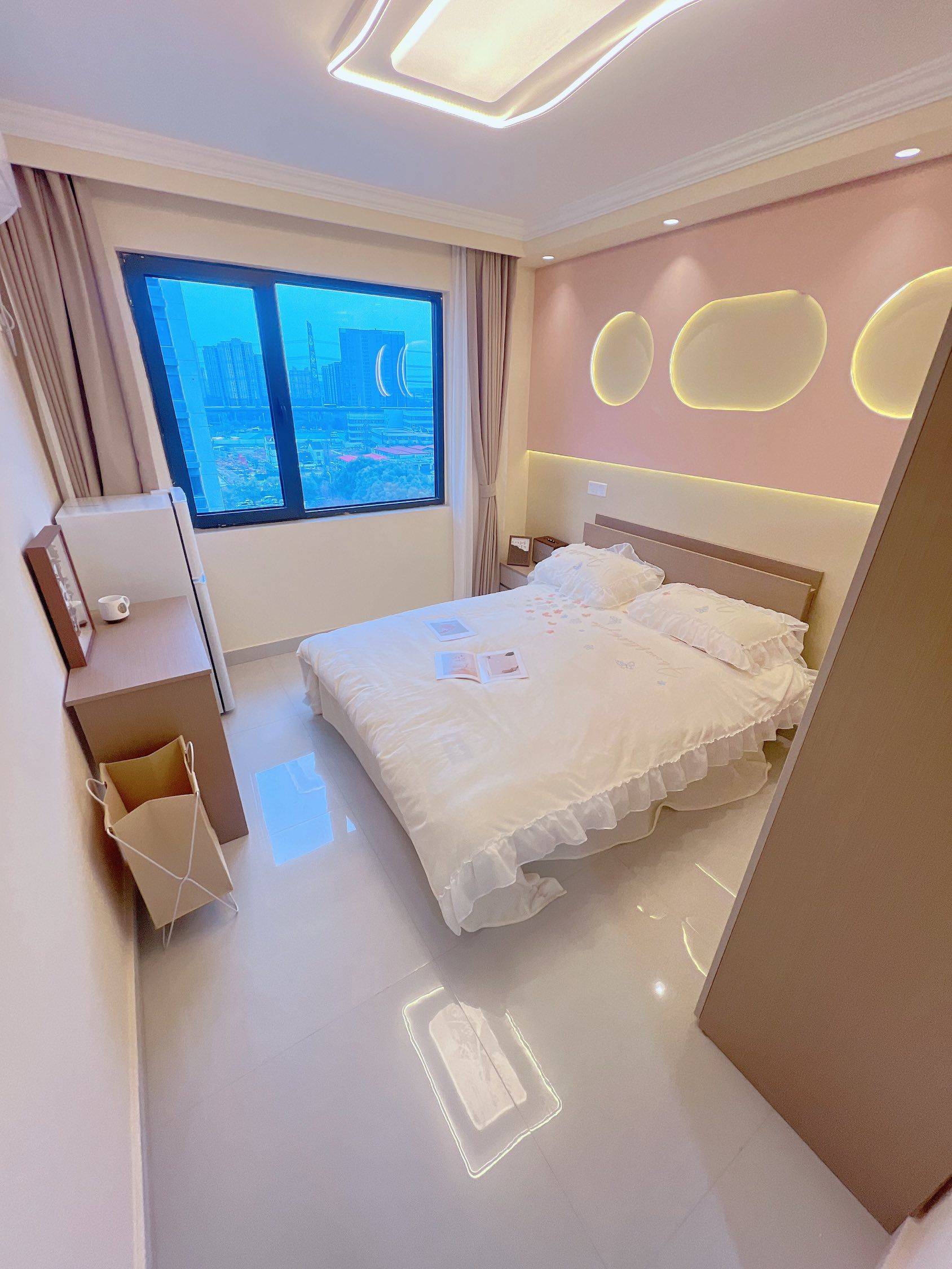 一、房源优势: 1、格局方正,朝向使用率超赞,独立厨卫,民用水电 2、价格便宜 同户型中佼佼者、整租一居室 二户型介绍: 1、阳台挑高、宽敞舒适、阳光非常充足 2、卧室搭配的很新颖,奶油ins风格搭配 3、厨房让您和家人有足够的空问展现私家厨艺 三、社区介绍: 1、社区环境好,环境优美,适宜居佳,人文素质高,物业管理完善 2、小区的容积率非常小,属于低密度社区,非常适宜居住 3、小区的绿化率高,让您感受花园一样的家 四、交通介绍;地理位置得天独厚,私家车和公共交通都能出行方便