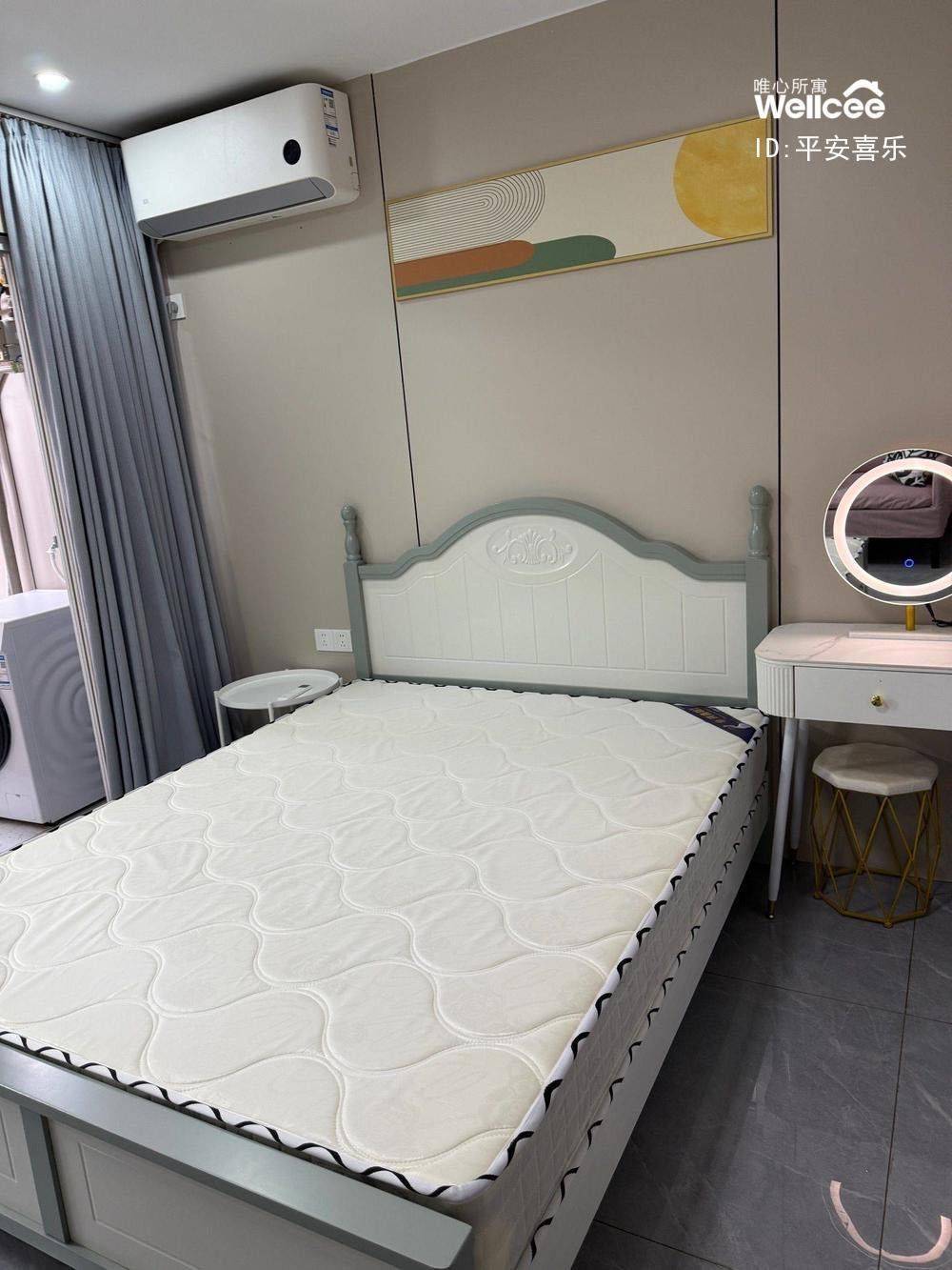 交通配套:出门100米就是马房山地铁口,8号线和11号线,门口走200米就是公交车站,附近一站路就是繁华的街道口群光广场、珞珈创意城。 生活配套:楼下就是电影院,盒马生鲜,购物泛悦城奥特莱斯,茶颜悦色,海底捞、大米先生,星巴克咖啡,汉堡王、麦当劳餐厅,可以足够满足年轻人的吃喝玩乐需求。 房屋配置:品牌家具1.5米大床和1.6米大衣柜,宜家沙发,桌椅,家电配置全新,小米滚筒洗衣机,小米一级能效空调,215升静音冰箱,能耗低。 空间氛围:一个人住很温馨,单独厨房卫生间,属于套间风格,互不打扰,独门独户,可以是你人生的第一个独立角落,也是深夜闺蜜来访的欢笑场面。 租住条件:房租包网络费,物业管理费,水费,燃气费用,除了电费不包,电费是民用电价格,直接拿电卡去物业存。 要求:押一付二希望寻找爱干净,爱护房间卫生,有公德心的你,非诚勿扰。