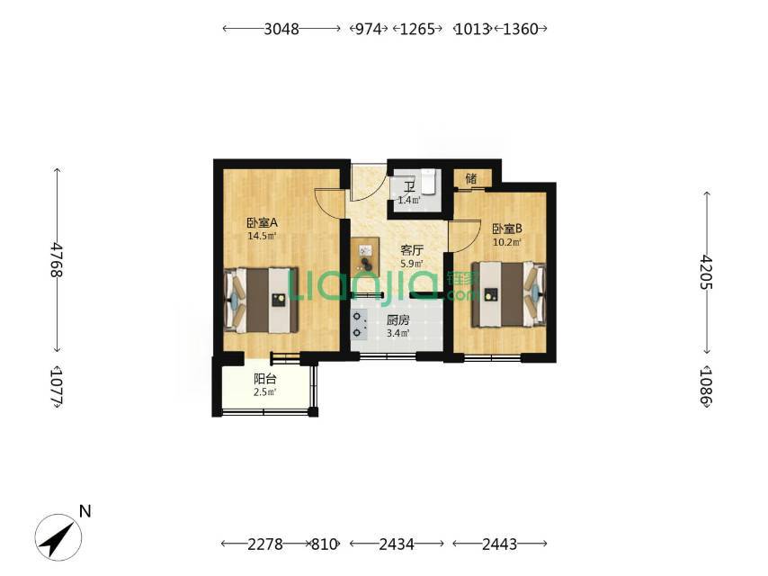 1 卧室/1 洗手间