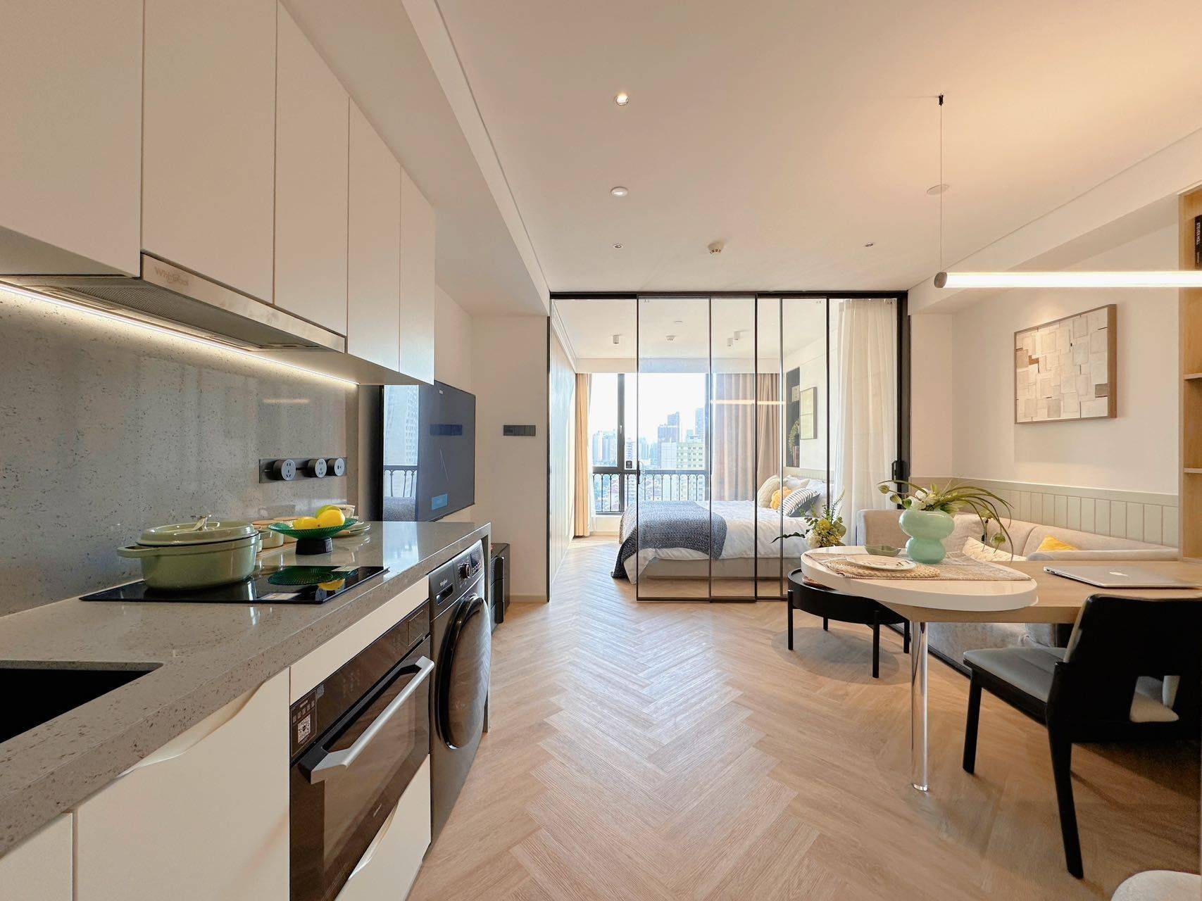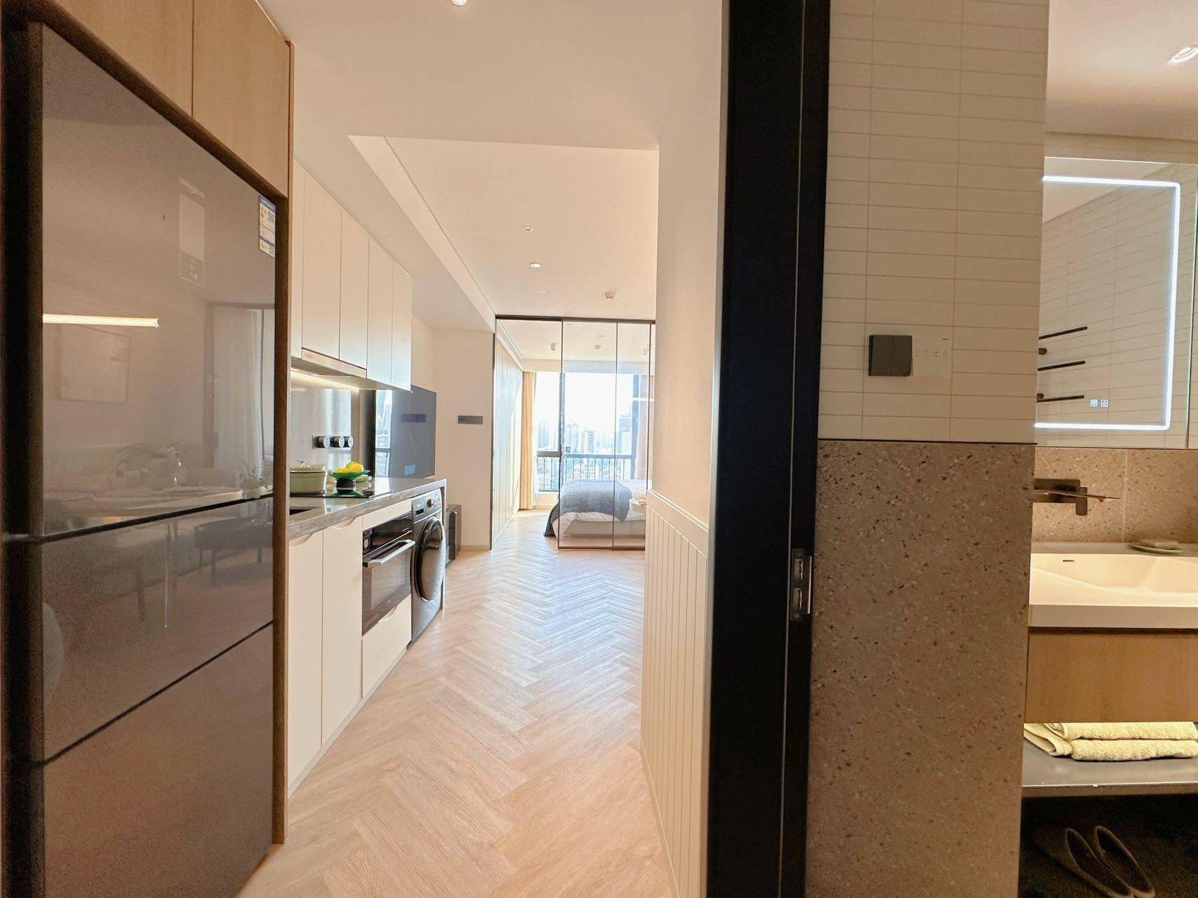 虹口市中心 市区对望陆家嘴 精装高品质服务式公寓出租 【位置】宝山路地铁站200米 中兴路地铁站400米 曲阜路900多米 四川北路地铁站1公里 海伦路地铁站1.7公里 2.【费用】电0.96,冷6.5 热50,地库停车1500,🉑外籍 3.【配套】智能家电,洗烘一体,每周免费保洁更换及床品更换