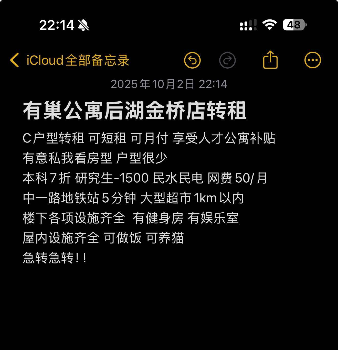 租金: 1500RMB/月