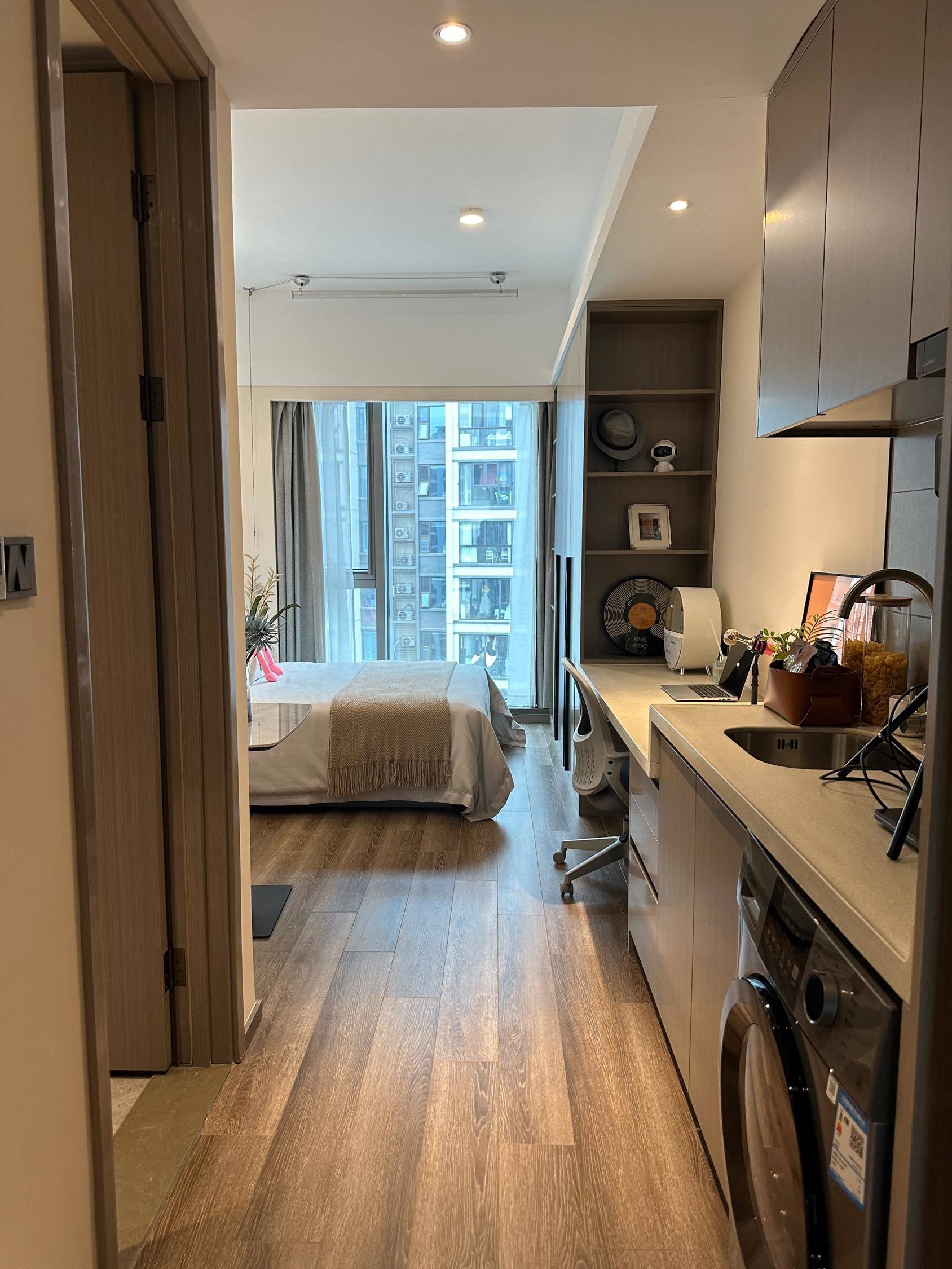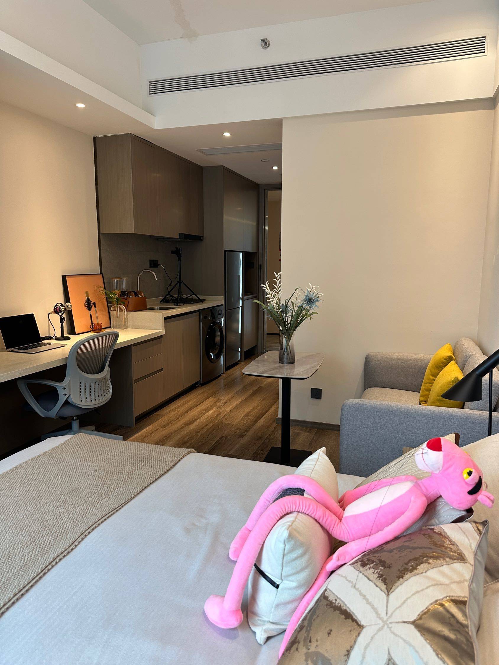 坐标:上海闵行区都会路3500弄1-3号(颛桥方隅服务公寓) 户型:标准1室1厅1厨1卫,建筑面积40㎡,朝南采光佳,全景落地窗 租金:3500 元/月起,付款方式灵活(押一付一/押一付三可选) 入住:随时可看,拎包即住,无中介费直签 🚇交通:15号线双柏路站步行可达,5号线颛桥站,双轨交汇,去紫竹高新区、莘庄、徐家汇超方便;门口多条公交线,自驾出行顺畅 🏠室内配置: • 品牌家具家电齐全:智能马桶、洗烘一体机、冰箱、空调、电视、定制寝具 • 独立厨房带油烟机,干湿分离卫浴,实体墙隔音,智能门锁 • 免费高速WiFi,全屋精装,储物空间充足 🏋️公区&服务: • 健身房、瑜伽室、台球室、会客区、景观花园、户外篮球场 • 24小时管家+驻场维修,公区保洁,定期社群活动 • 人脸识别门禁,快递柜,外卖可直达 🛒周边:万达广场、鑫佳广场、大润发,超市餐饮药房齐全,生活配套成熟;临近医院、学校,宜居度拉满 💬补充:宠物友好,可接待外籍租客;签约正规合同,权益有保障;无任何隐性收费