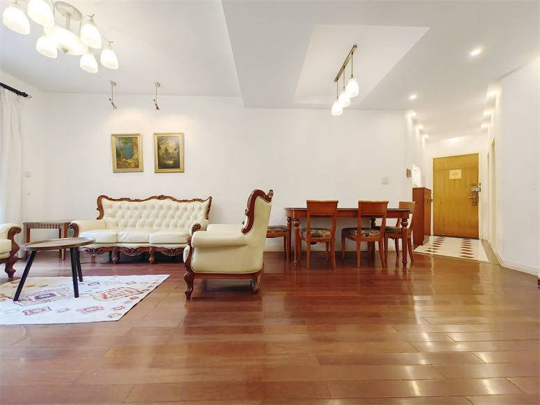 虹桥路2222弄33号王子公寓3房2厅2卫130.11平出租,租金15,500元,看不入眼的全部修缮完毕,比其他在出租的租金16,000-17,000的房子都要好。全套西班牙实木家具,主卧配80英寸电视机,带精品小院子,随时起租。放眼见绿,前面无遮挡,采光极佳,坐在客厅,美景一览无余,一年四季自家的花园衔接公区的大草坪,所见美景均是绿色,美不胜收。空闲时浇浇花,享受天然的氧吧,欢迎实地查看。居住品质:1997年获白玉兰奖(上海建筑工程质量最高奖),配备24小时智能安防,网球场等设施,绿化率40%。区位特征:距地铁10号线龙溪路站仅228米,周围有多条公交路线(57,911,71,941,757,809等)3公里内覆盖15所中小学及武警医院,毗邻森晟世洋国际广场等商业体。