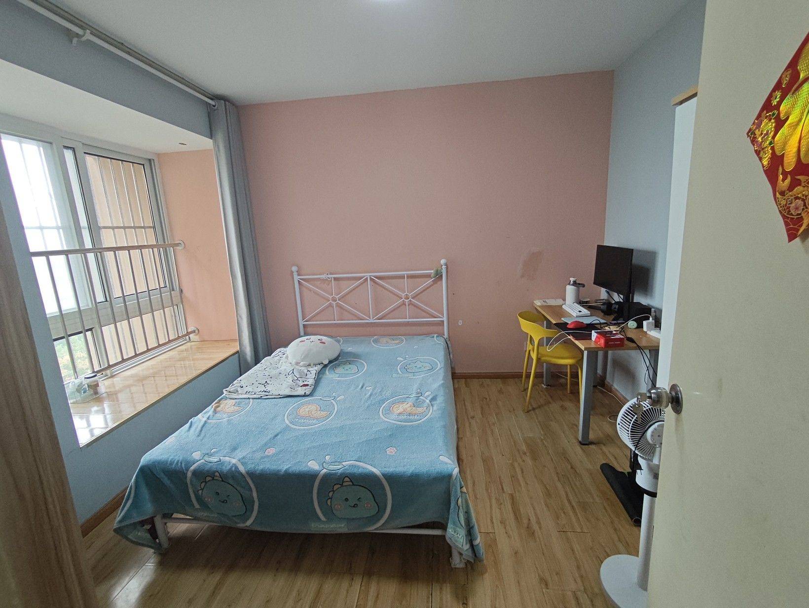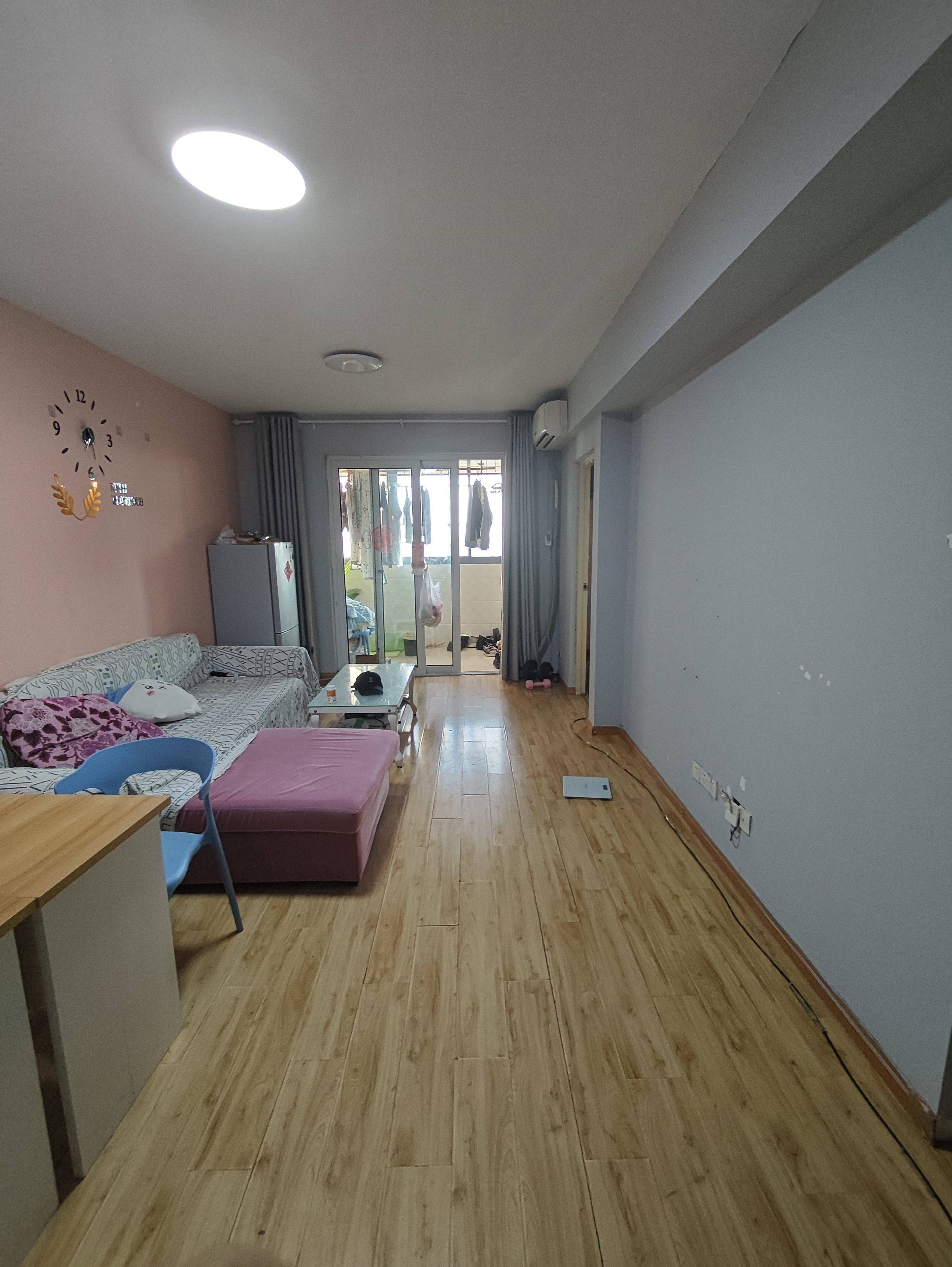 房间应该总共有70多平,两个卧室,一个卧室带阳台,总共有三个空调,离小区门近,走小区对面就有公交站,坐公交车车二十分钟差不多可以到油坊桥地铁站,还算方便
