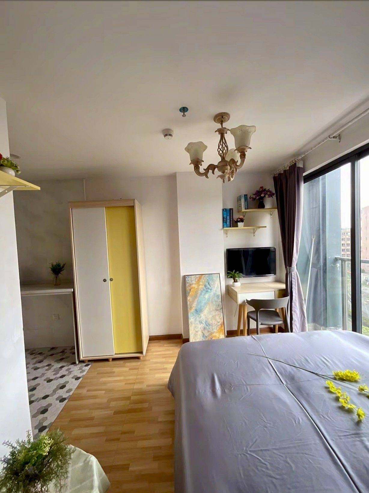 沙井个人转租,租期还有五个多月 租金1080包含管理费 门口就有公交站,公交15分钟到地铁站 房间有落地窗,采光好,有免费健身房跑步机 免费公共大厨房