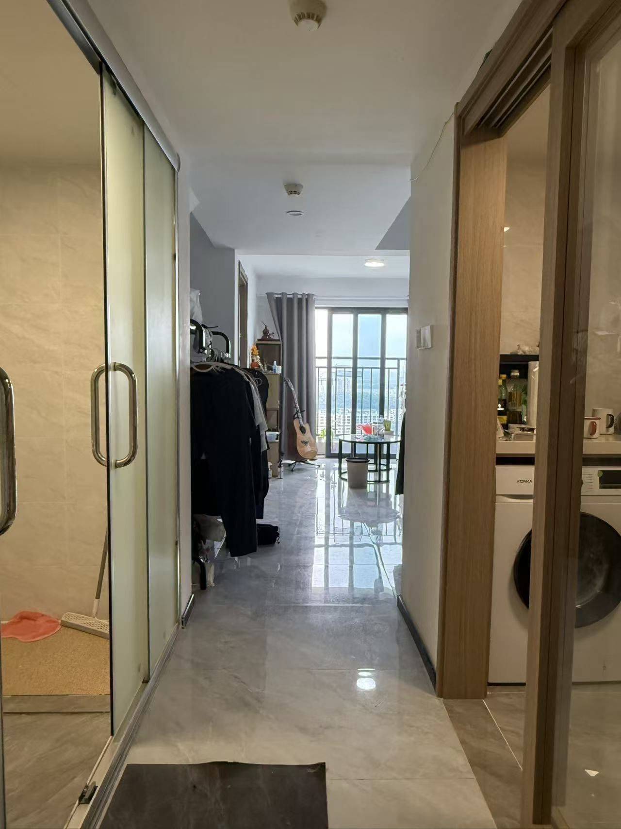 1.转租原因:因为工作调动要离开广州了,所以转租这个房。租的话,需要和房东重新签合同。 2.位置:中国软件cbd小区,最近5号线文冲地铁站,骑小电驴5分钟就到地铁口,很方便,或者13号线双岗A/B口,电驴8分钟就到 文冲地铁口沃尔玛,周边很多吃的喝的,还有卖菜卖肉的超市,附近也有个大的综合菜市场很方便 3.户型:loft两房一厅两卫,电梯,19楼,50坪,采光超好,超通风,可以插电做饭,可以养宠物!空间大!客厅和房间分别带小阳台,采光特别好,一整天都是阳光,阳台对面是江,风景好,超级通风,窗一打开跟凉快,空调都不用开!重点是两个厕所!两个人住的话,根本不用担心抢厕所的问题! 4.房租2700,每个月补贴200直到26年4月租期结束,相当于2500一个月,水5.8/吨,电0.71/度,管理费 3.5/坪,wifi自己装 5.周边:家楼下有电影院/菜鸟驿站/奶茶店/便利店/餐馆子,晚上还有很多摆摊的小吃摊,小区对面是园区,附近很安静,因为当初就是想要找安静一点的房子,所以才选了这一栋,很适合想要安静的人住 6.家电设施:空调,冰箱,热水器,洗衣机,油烟机,衣橱,沙发,床,桌子都有,家电配的都是一级的,很省电!房东人很好,平时东西坏了,可以找房东安排人直接上门修